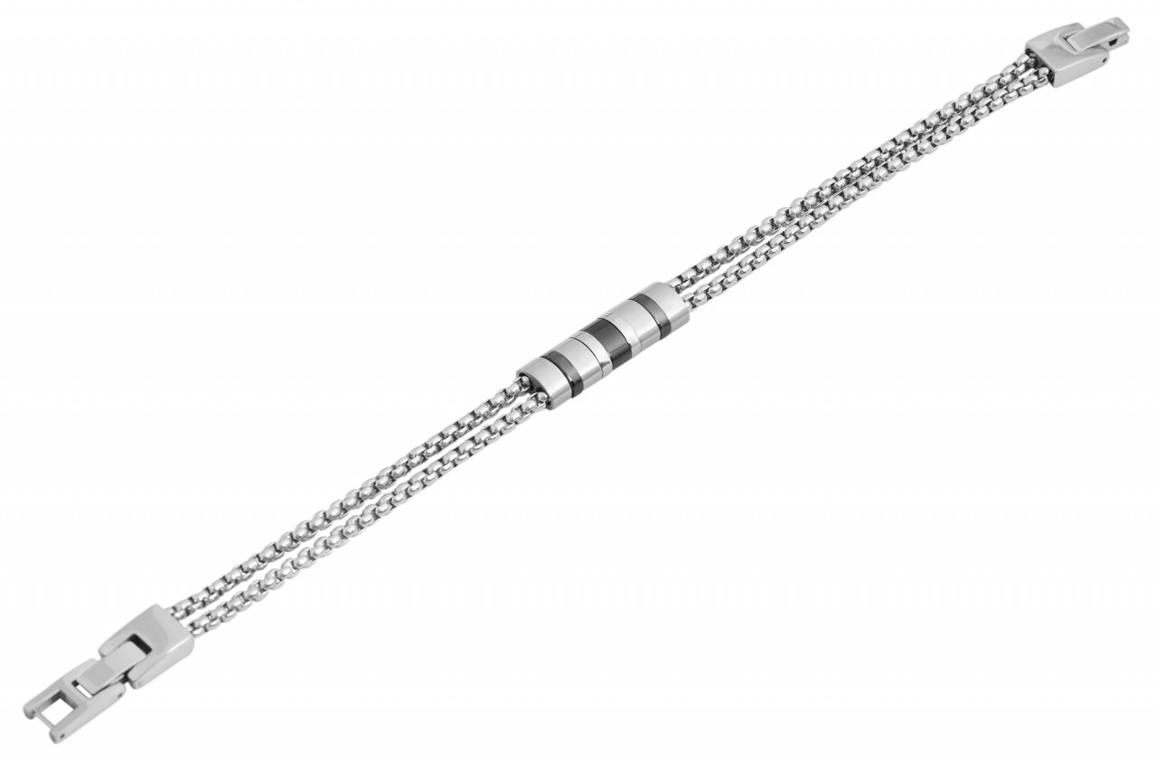 Esta requintada pulseira em aço inoxidável é composta por duas correntes venezianas e apresenta uma combinação harmoniosa de diferentes elementos e símbolos em aço inoxidável, bem como combinações de cores. O design elaborado da pulseira reflecte-se no trabalho preciso das correntes venezianas e na disposição artística dos elementos em aço inoxidável. Cada elemento foi cuidadosamente selecionado para criar uma estética harmoniosa. Os elementos em aço inoxidável de alta qualidade oferecem a possibilidade de gravação para dar um toque pessoal à pulseira. Pode gravar nomes, datas ou mensagens especiais para tornar a pulseira num presente único ou numa recordação especial. O prático fecho de clipe garante uma fixação segura e facilita a colocação e a remoção da pulseira. Com um comprimento de 21 cm, uma largura de 8 mm e uma espessura de 5 mm.