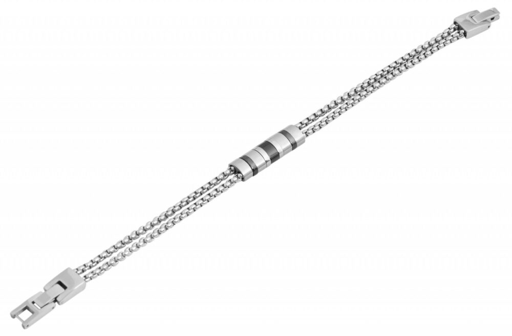 Esta requintada pulseira em aço inoxidável é composta por duas correntes venezianas e apresenta uma combinação harmoniosa de diferentes elementos e símbolos em aço inoxidável, bem como combinações de cores. O design elaborado da pulseira reflecte-se no trabalho preciso das correntes venezianas e na disposição artística dos elementos em aço inoxidável. Cada elemento foi cuidadosamente selecionado para criar uma estética harmoniosa. Os elementos em aço inoxidável de alta qualidade oferecem a possibilidade de gravação para dar um toque pessoal à pulseira. Pode gravar nomes, datas ou mensagens especiais para tornar a pulseira num presente único ou numa recordação especial. O prático fecho de clipe garante uma fixação segura e facilita a colocação e a remoção da pulseira. Com um comprimento de 21 cm, uma largura de 8 mm e uma espessura de 5 mm.
