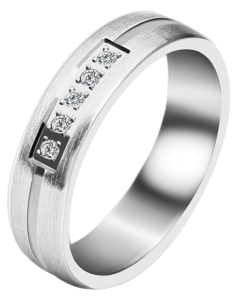 Feito de aço inoxidável de alta qualidade, nosso anel feminino tem acabamento fosco e prateado e simboliza estabilidade e união. Cinco pedras simil são apresentadas na superfície fosca, dando ao anel um toque de brilho. Disponível em vários tamanhos, de 50 a 62, este anel de parceiro oferece o ajuste perfeito para cada dedo. Com largura de 5 mm e espessura de 2 mm, oferece uma presença sutil e um ajuste confortável. O anel é curvado, o que o torna ainda mais confortável de usar. A possibilidade de gravação torna-a uma joia especial, que apresenta idealmente a união de duas pessoas.