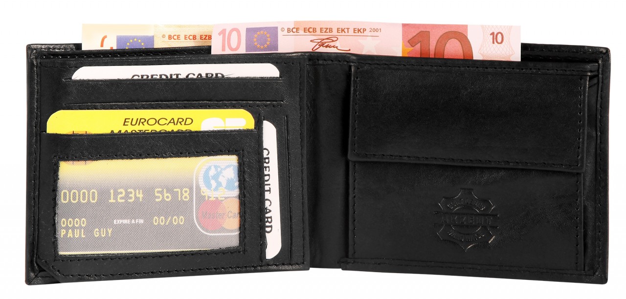 A carteira masculina da marca Praktik foi confeccionada em formato paisagem em couro genuíno. Tem comprimento de 9,2 cm, largura de 11,8 cm e espessura do material de 2 cm quando não preenchido. A bolsa impressiona pelo design simples e pela capacidade de armazenar documentos importantes. Graças à divisão confortável, possui 2 compartimentos para notas, 1 compartimento para moedas com chip de compras, 7 compartimentos para cartões de crédito, 1 compartimento transparente para identificação e 3 bolsos deslizantes. A carteira é um ótimo acessório para ele e é ideal como presente.