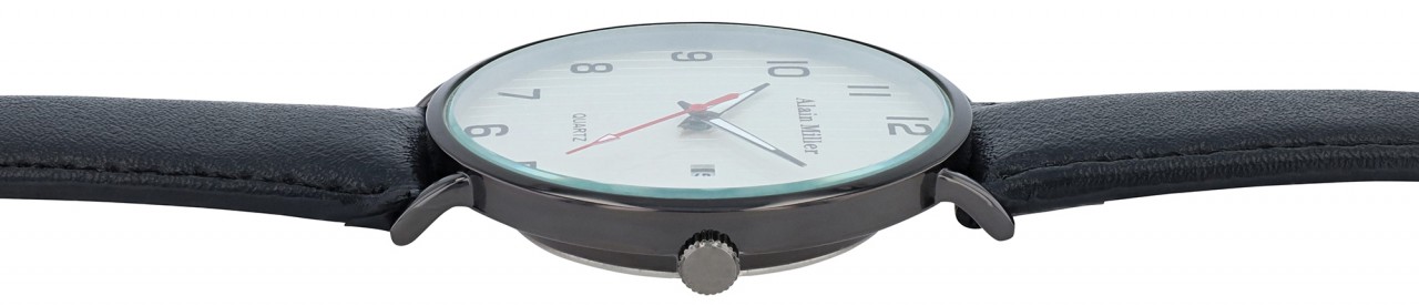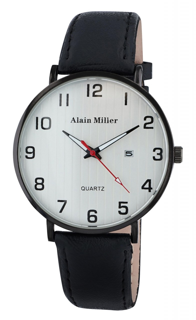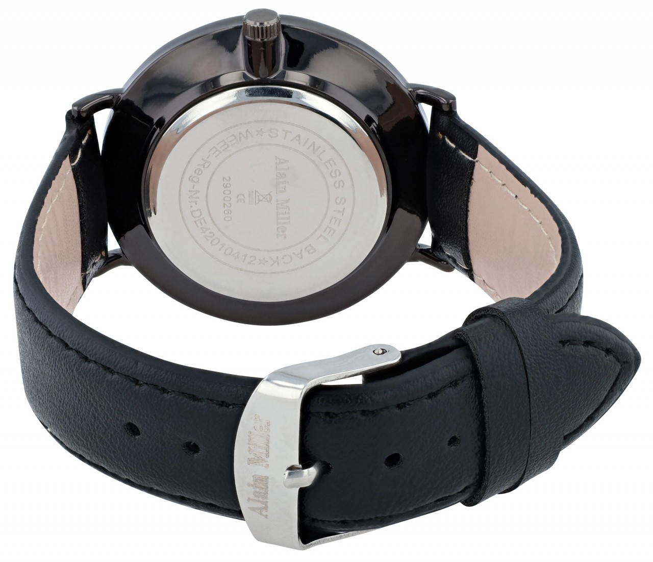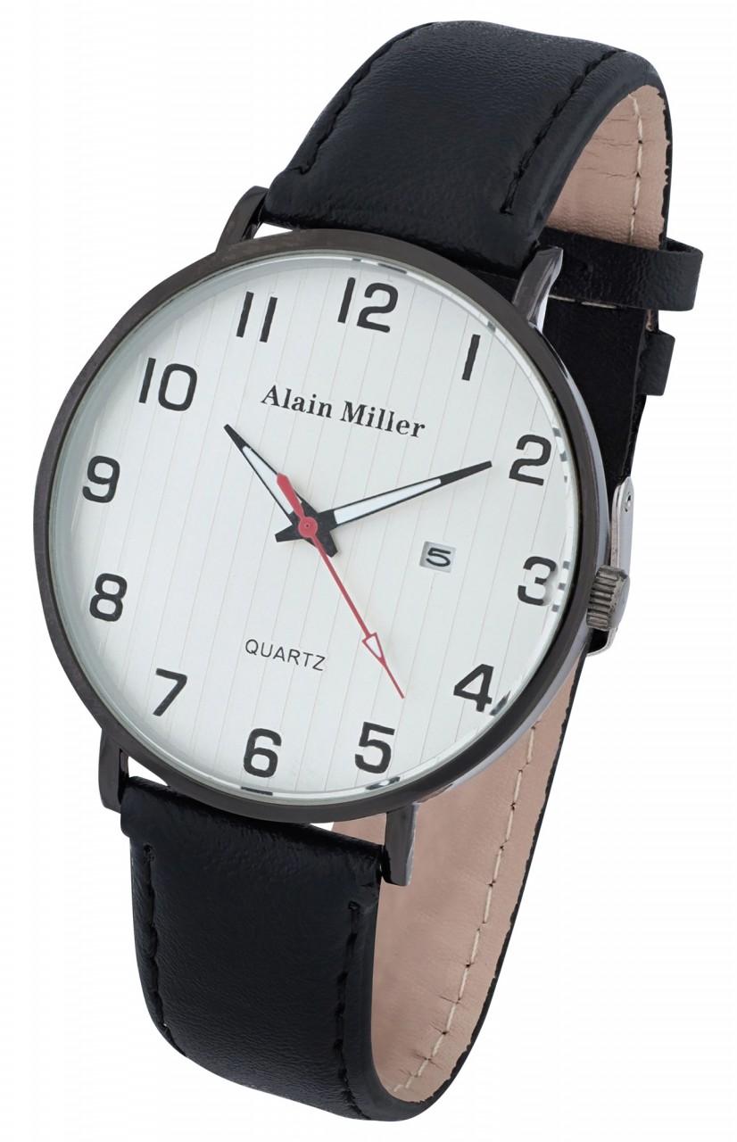 Relógio masculino da marca Alain Miller com bracelete em pele sintética.