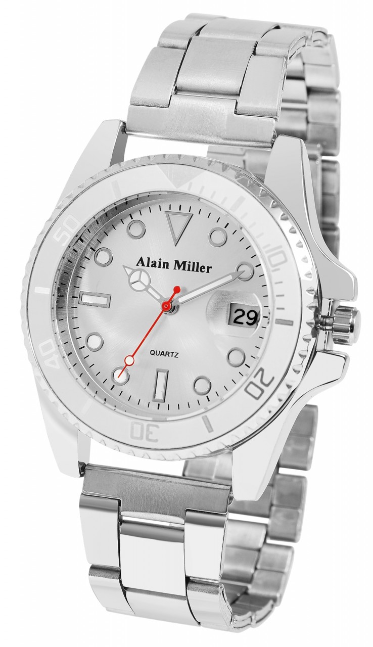 O relógio de pulso masculino Alain Miller não é apenas um relógio, mas uma declaração de estilo e sofisticação. O movimento de quartzo SL28 de alta qualidade garante uma cronometragem precisa, enquanto a pulseira de aço inoxidável com fecho dobrável em aço inoxidável garante uma experiência de uso segura e confortável. Com diâmetro de 39 mm e altura de 12 mm, a caixa metálica com vidro mineral é robusta e marcante. O fundo da caixa em aço inoxidável garante estabilidade e durabilidade adicionais, enquanto os ponteiros, linhas e pontos revestidos com Superluminova permitem que as horas sejam lidas com clareza, mesmo no escuro. O relógio de pulso masculino Alain Miller combina funcionalidade e estética ao mais alto nível e é confortável de usar graças ao seu peso leve. Este relógio se tornará um companheiro fiel de todo homem moderno.