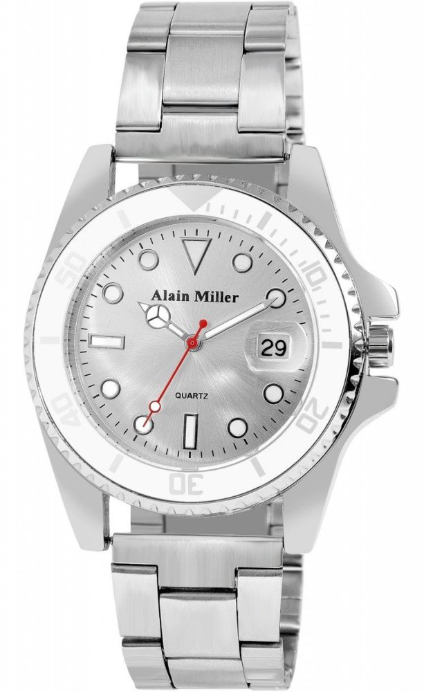 O relógio de pulso masculino Alain Miller não é apenas um relógio, mas uma declaração de estilo e sofisticação. O movimento de quartzo SL28 de alta qualidade garante uma cronometragem precisa, enquanto a pulseira de aço inoxidável com fecho dobrável em aço inoxidável garante uma experiência de uso segura e confortável. Com diâmetro de 39 mm e altura de 12 mm, a caixa metálica com vidro mineral é robusta e marcante. O fundo da caixa em aço inoxidável garante estabilidade e durabilidade adicionais, enquanto os ponteiros, linhas e pontos revestidos com Superluminova permitem que as horas sejam lidas com clareza, mesmo no escuro. O relógio de pulso masculino Alain Miller combina funcionalidade e estética ao mais alto nível e é confortável de usar graças ao seu peso leve. Este relógio se tornará um companheiro fiel de todo homem moderno.