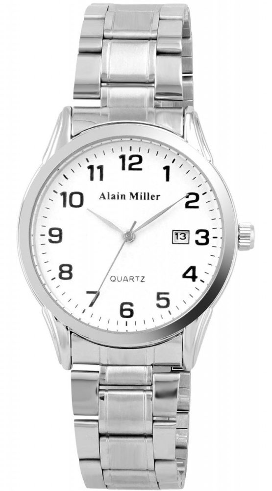 Descubra o relógio analógico masculino de 3 ponteiros de Alain Miller – uma obra-prima de design atemporal e seu companheiro diário perfeito. Movimento de quartzo de alta qualidade: Equipado com um movimento de quartzo SL28 preciso, o relógio garante cronometragem precisa e durabilidade. Caixa: A caixa redonda de metal mede 40 mm de diâmetro e tem uma altura confortável de 9 mm. Mostrador: O mostrador de fácil leitura apresenta algarismos arábicos e uma exibição de data, permitindo que você veja a hora e a data rapidamente. Vidro mineral: Um vidro mineral robusto protege o mostrador contra arranhões e impactos. Fundo da caixa: Feito de aço inoxidável, o fundo da caixa garante robustez e longevidade adicionais. Pulseira: A pulseira de elos de aço inoxidável tem uma largura de 20 mm nas alças e pode ser aberta e fechada usando um fecho dobrável de aço inoxidável.