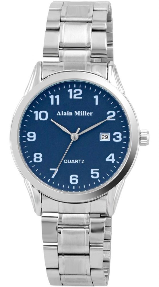 Descubra o relógio analógico masculino de 3 ponteiros de Alain Miller – uma obra-prima de design atemporal e seu companheiro diário perfeito. Movimento de quartzo de alta qualidade: Equipado com um movimento de quartzo SL28 preciso, o relógio garante cronometragem precisa e durabilidade. Caixa: A caixa redonda de metal mede 40 mm de diâmetro e tem uma altura confortável de 9 mm. Mostrador: O mostrador de fácil leitura apresenta algarismos arábicos e uma exibição de data, permitindo que você veja a hora e a data rapidamente. Vidro mineral: Um vidro mineral robusto protege o mostrador contra arranhões e impactos. Fundo da caixa: Feito de aço inoxidável, o fundo da caixa garante robustez e longevidade adicionais. Pulseira: A pulseira de elos de aço inoxidável tem uma largura de 20 mm nas alças e pode ser aberta e fechada usando um fecho dobrável de aço inoxidável.