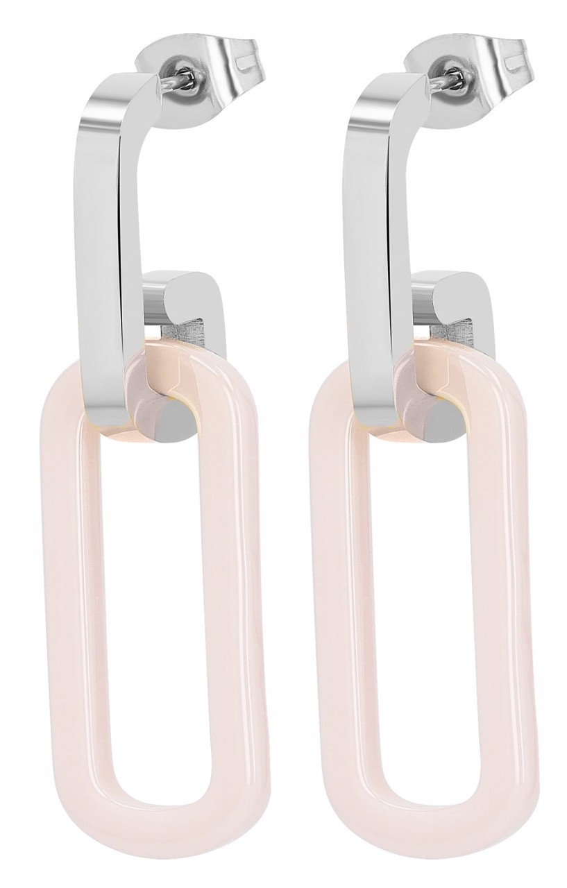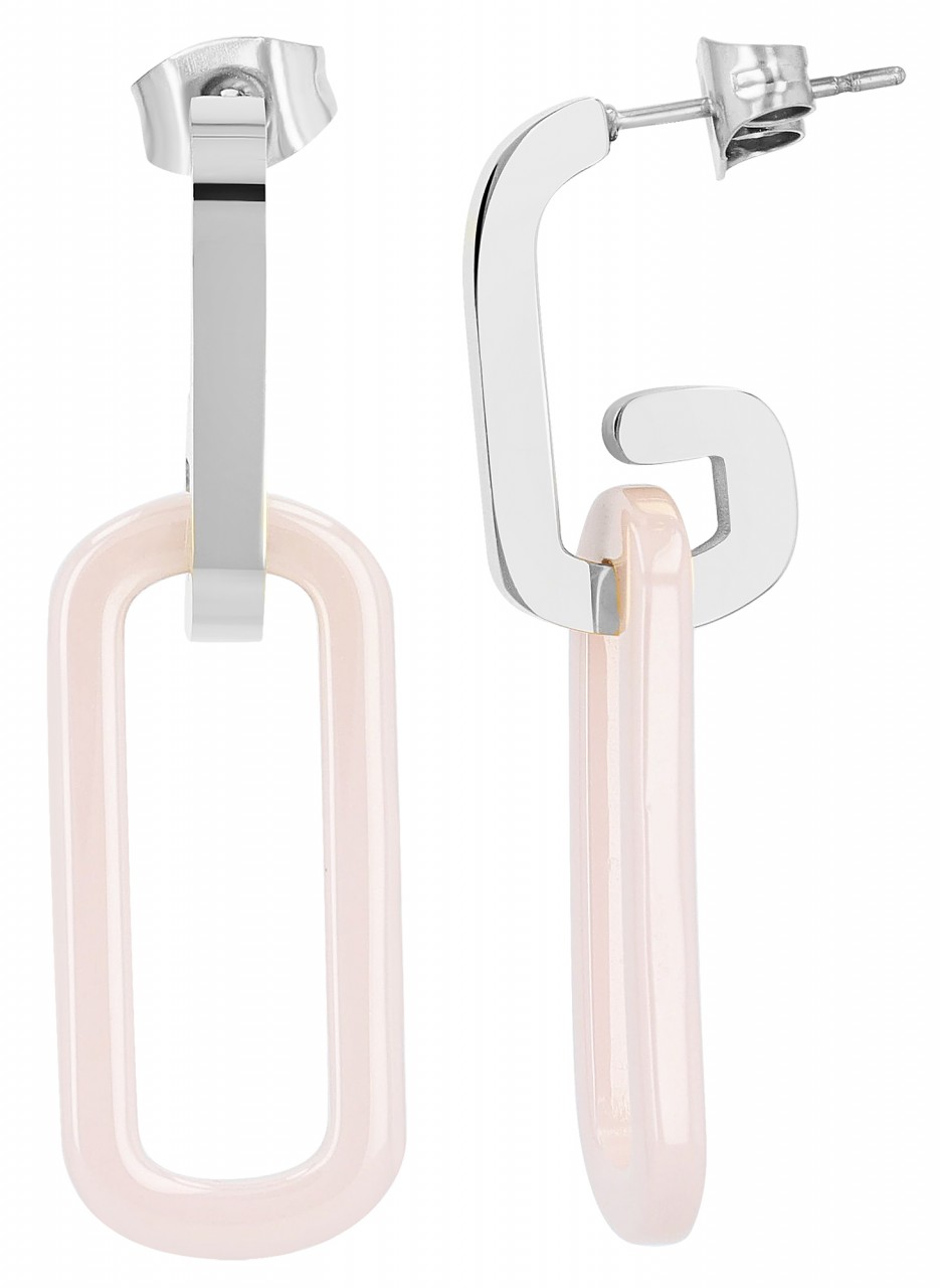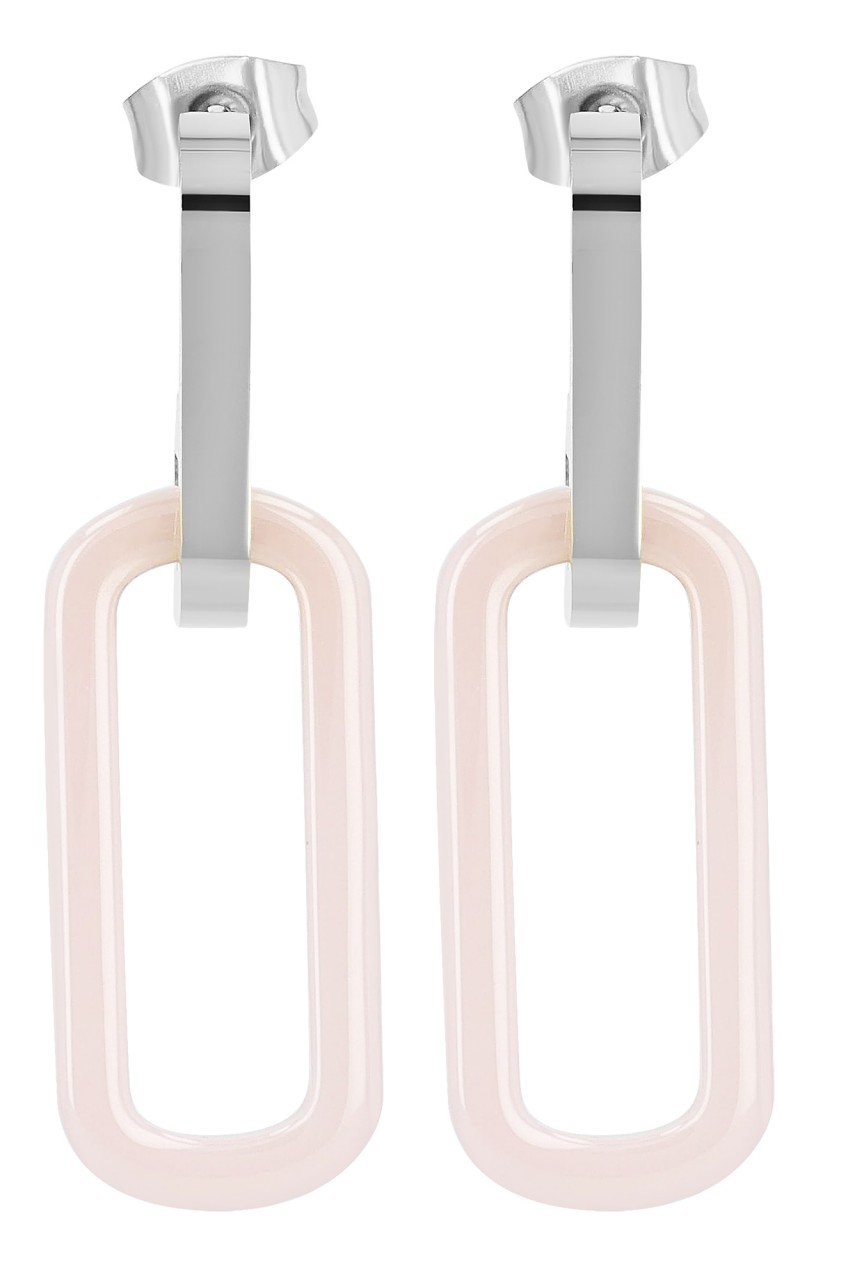 Estes brincos clássicos feitos de aço inoxidável de alta qualidade com um elemento de cerâmica impressionam com um pingente rosa que combina facilmente com qualquer roupa. Com um comprimento total de 37 mm, um pino de 18 mm e um pingente de 25 mm. As duas variações de cor dão à joia uma aparência nobre e o fecho de encaixe garante uma fixação segura e é confortável de usar ao mesmo tempo.