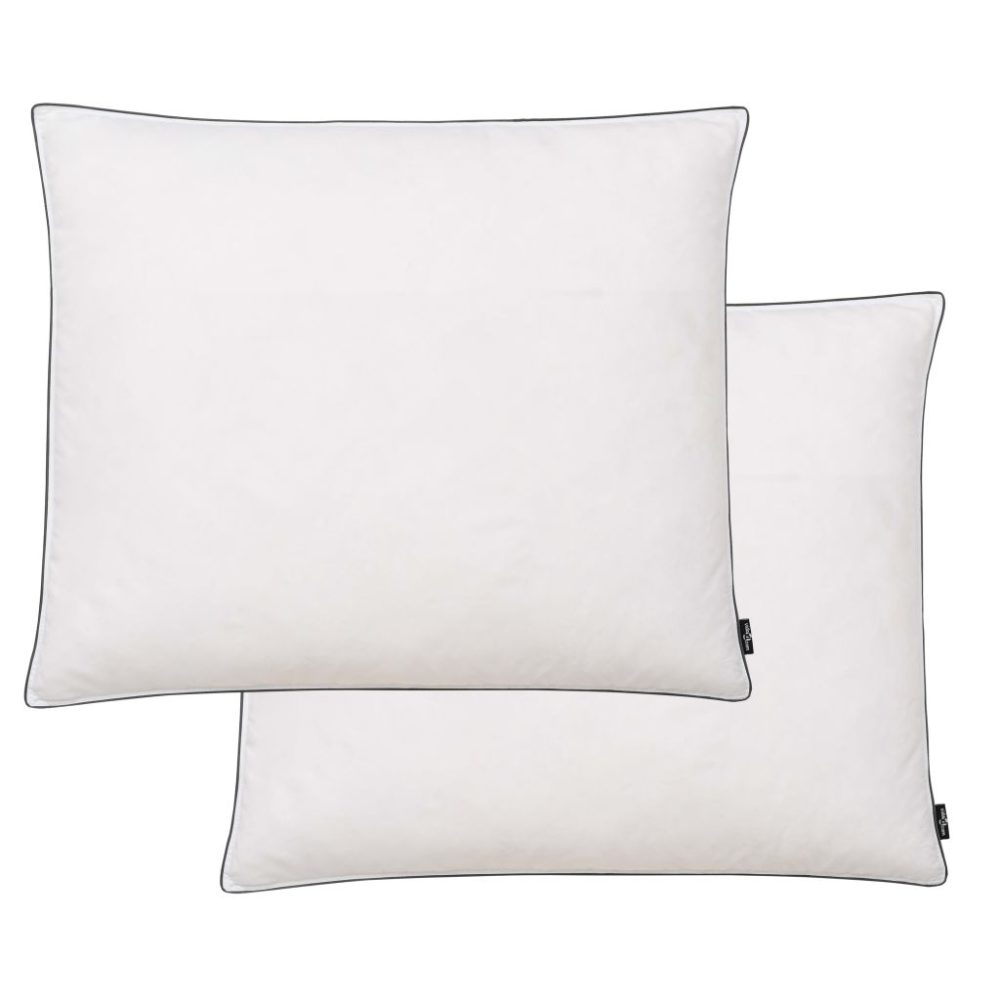 As capas das almofadas são feitas de microfibra escovada macia e confortável. Graças ao enchimento de penas e penugem suave, as almofadas recuperam a sua forma após o uso. As almofadas são laváveis na máquina até 40°C. A entrega inclui 2 almofadas.