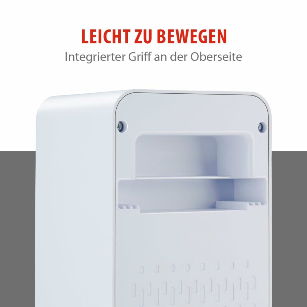- Aquecimento elétrico com pega: uma alça está integrada na parte superior do radiador do ventilador para que possa mover facilmente o dispositivo.