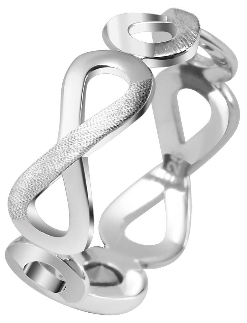 O elegante anel feminino com design moderno de infinito é feito de prata esterlina 925 e adicionalmente banhado a ródio. Está disponível nos tamanhos 52 – 62, tem largura de 6 mm e espessura de 1 mm. O banho de ródio de alta qualidade protege a joia contra manchas. Além disso, a textura da superfície é altamente polida, para que o acabamento brilhe. O anel se ajusta perfeitamente ao dedo sem escorregar e garante o máximo conforto. Os símbolos do infinito entrelaçados formam uma unidade harmoniosa e fazem deste anel feminino da moda um atrativo estiloso com o qual você pode chamar a atenção de todos de maneira inteligente para você e seu novo acessório.