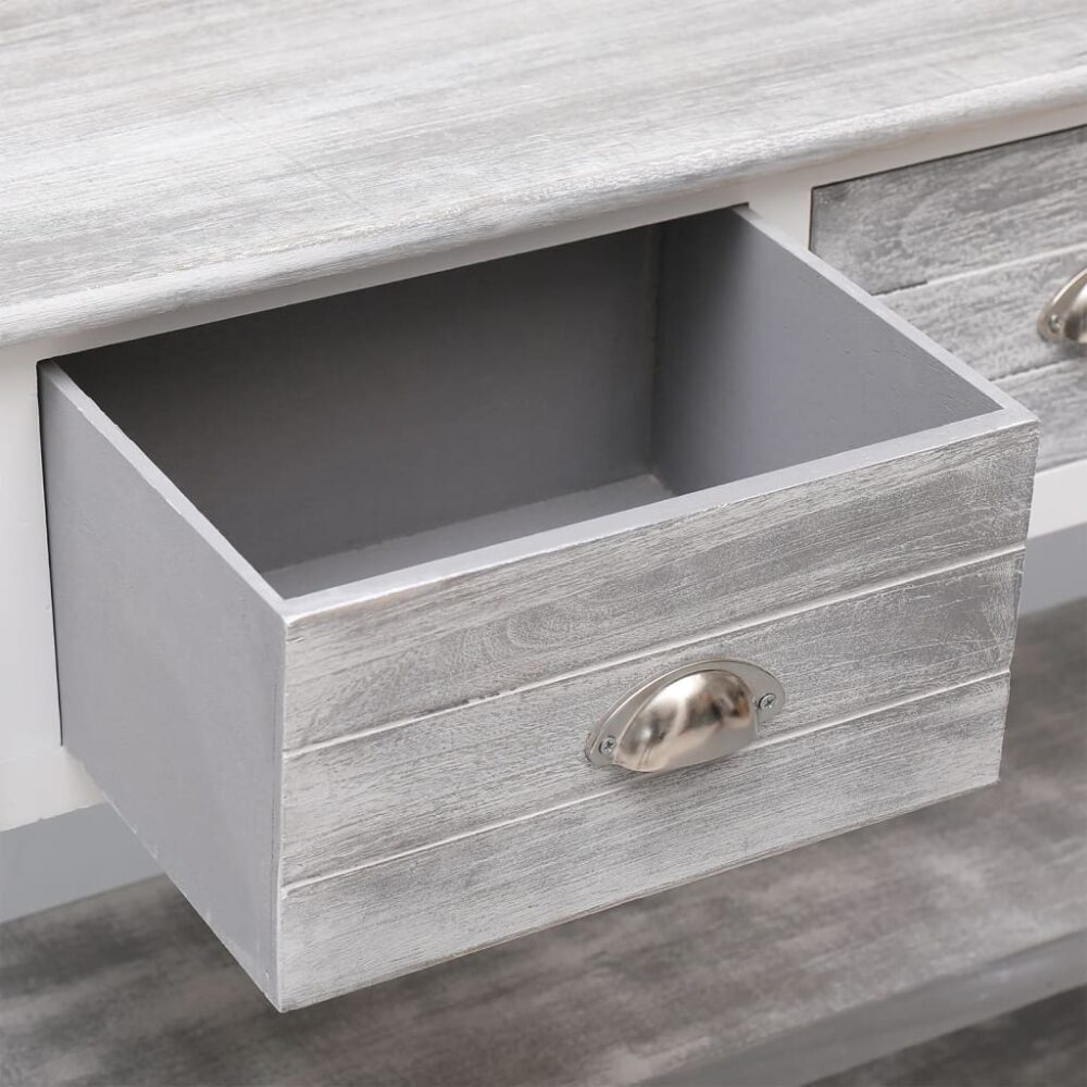 Este aparador de madeira será um complemento intemporal para a decoração do seu interior. O aparador é feito em madeira de álamo e paulownia de qualidade e é altamente estável e durável. O seu tampo robusto é ideal para colocar artigos decorativos tais como jarros ou vasos com plantas. As 3 gavetas e 2 prateleiras oferecem um amplo espaço de armazenamento para manter os seus vários artigos devidamente organizados. Também pode ser usado como uma mesa consola prática.