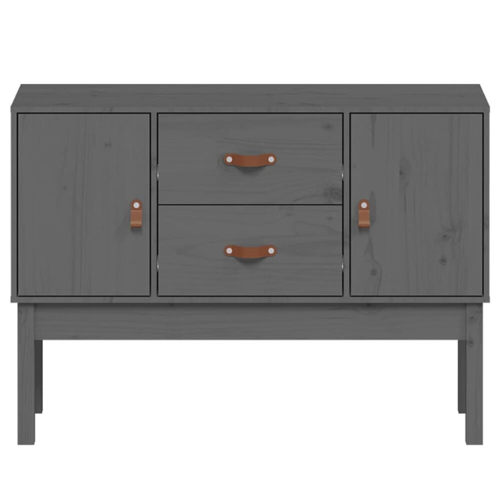 Este aparador clássico, com um aspeto intemporal, destina-se a ser um excelente complemento para a sua casa. Madeira de pinho maciça: a madeira de pinho maciça é um bonito material natural. A madeira de pinho possui um grão reto e os nós dão ao material o seu aspeto rústico.Amplo espaço de arrumação: o armário possui 2 gavetas e 2 compartimentos, proporcionando um amplo espaço de arrumação para manter os seus vários artigos essenciais diários bem organizados e fáceis de alcançar.Tampo robusto: pode também colocar as suas fotografias, decorações ou flores favoritas no tampo do armário aparador para dar mais beleza ao seu espaço.Portas práticas: o armário possui portas que podem proteger as suas coisas do pó e da sujidade.Pés de madeira: os pés de madeira conferem ao armário de arrumação um aspeto natural e agradável, ao mesmo tempo que garantem estabilidade. Combina com qualquer decoração de interior. Atenção:Para evitar que o produto se vire, deve utilizar o dispositivo de fixação na parede fornecido. Nota:Cada produto é fornecido com um manual de instruções na caixa para facilitar a montagem.