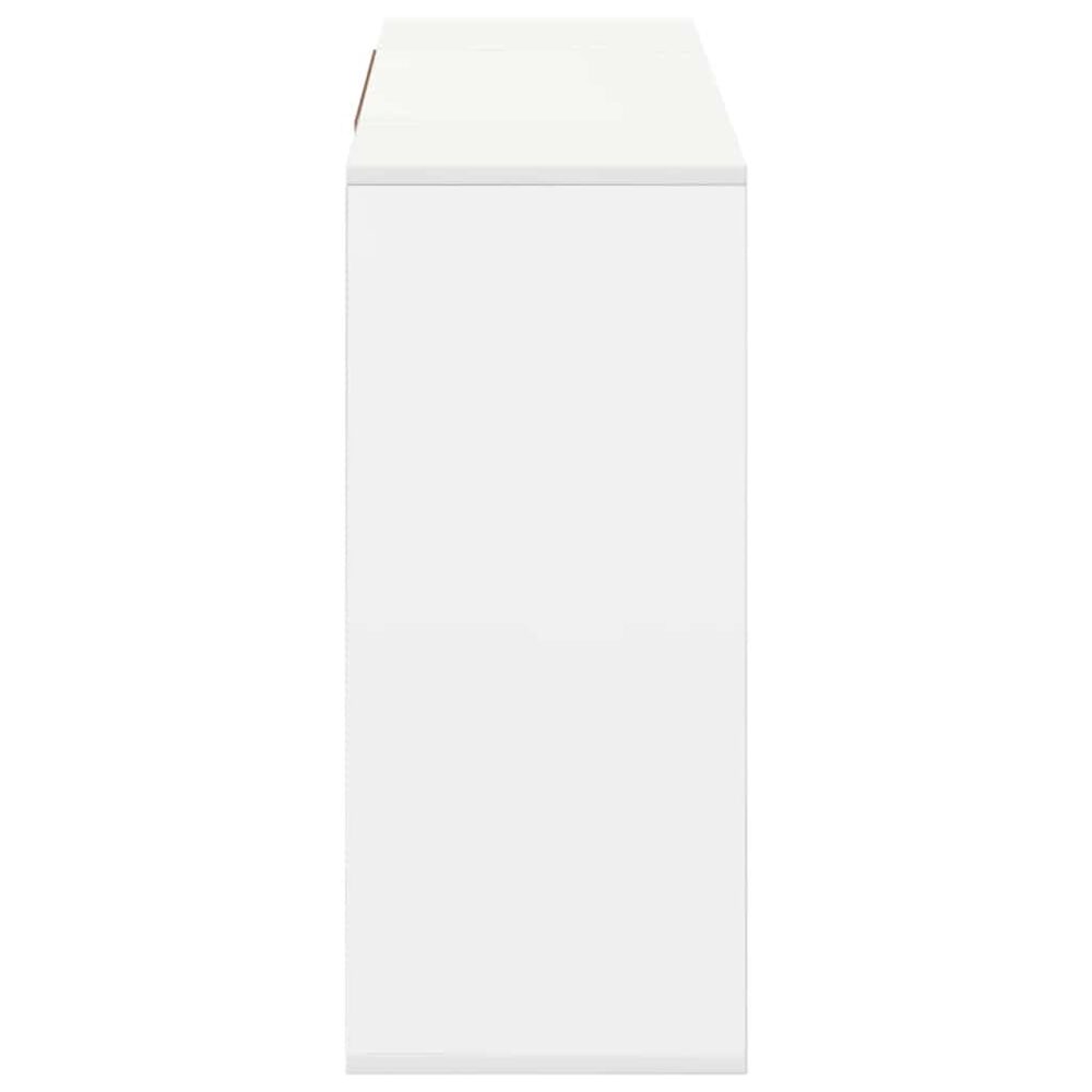Este aparador imperdível, com prateleiras, tem um design simples e moderno, tornando-o num ótimo complemento para a decoração atual da sua divisão! O tampo resistente é perfeito para colocar artigos decorativos, tais como molduras de fotos, plantas em vaso, etc. Equipado com 4 prateleiras, este armário fornece amplo espaço para manter os seus vários artigos devidamente organizados e ao alcance. Este armário de apoio também é fácil de limpar com um pano húmido.
