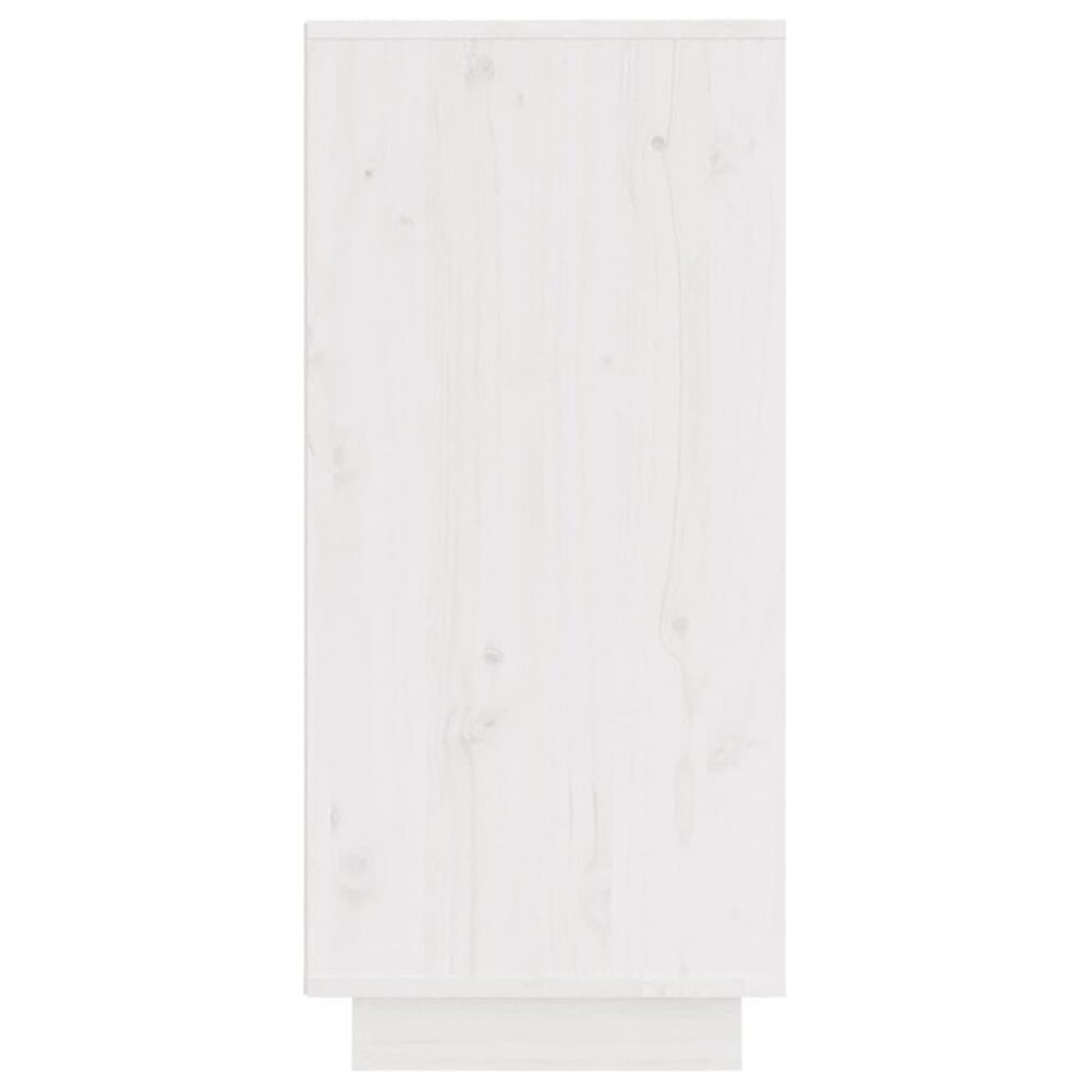 Este aparador de madeira é um complemento decorativo e prático perfeito para a sua decoração. Este armário de apoio é feito em madeira de pinho maciça e MDF, assegurando a sua robustez e construção durável. Com 2 portas, o armário oferece um amplo espaço de arrumação para livros, aparelhos multimédia e outros artigos. O tampo resistente é perfeito para expor objetos decorativos, molduras e vasos com plantas. O armário com portas apresenta pés suspensos.