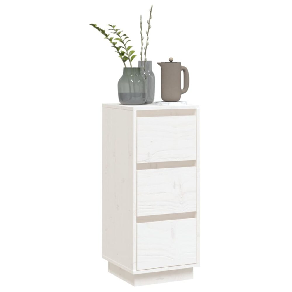 Este aparador em madeira proporciona um toque de elegância e uma aparência clássica à sua área habitacional. Este armário de apoio é feito em madeira de pinho maciça, que assegura a sua durabilidade e estabilidade. O armário com portas oferece um amplo espaço de arrumação para livros, aparelhos multimédia e outros artigos. O tampo resistente também é ideal para expor objetos decorativos, molduras ou vasos com plantas.