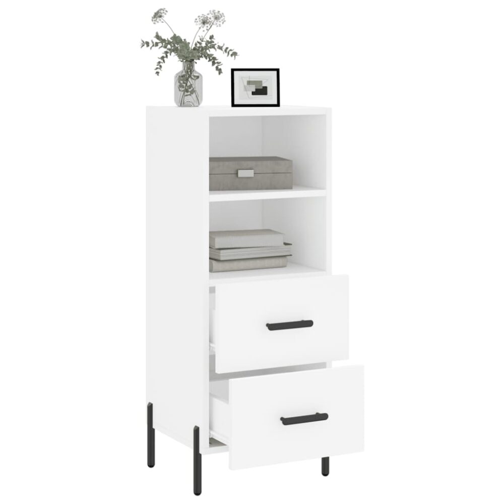 Este aparador moderno, com um aspeto intemporal, destina-se a ser um excelente complemento para a sua casa. Material durável: os derivados de madeira possuem uma qualidade excecional e oferecem uma superfície suave bem como força, estabilidade e resistência à humidade. Pernas de metal: as pernas de metal acrescentam um estilo moderno e calmo ao seu interior, ao mesmo tempo que garantem estabilidade. Amplo espaço de arrumação: este armário aparador foi concebido com 2 compartimentos e 2 gavetas para manter as coisas organizadas e ao seu alcance. Tampo robusto e estável: o tampo do armário é perfeito para expor os seus artigos decorativos, molduras e vasos com plantas. Atenção:Para evitar que o produto se vire, deve utilizar o dispositivo de fixação na parede fornecido.