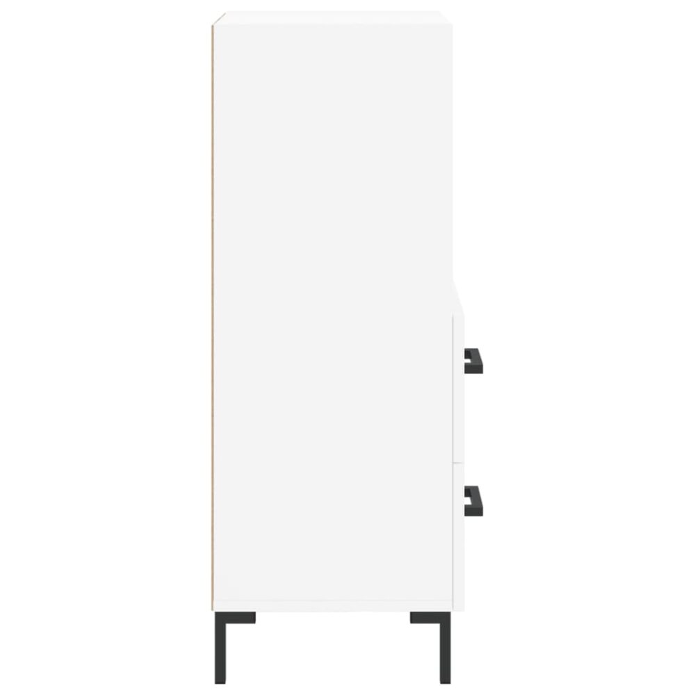 Este aparador moderno, com um aspeto intemporal, destina-se a ser um excelente complemento para a sua casa. Material durável: os derivados de madeira possuem uma qualidade excecional e oferecem uma superfície suave bem como força, estabilidade e resistência à humidade. Pernas de metal: as pernas de metal acrescentam um estilo moderno e calmo ao seu interior, ao mesmo tempo que garantem estabilidade. Amplo espaço de arrumação: este armário aparador foi concebido com 2 compartimentos e 2 gavetas para manter as coisas organizadas e ao seu alcance. Tampo robusto e estável: o tampo do armário é perfeito para expor os seus artigos decorativos, molduras e vasos com plantas. Atenção:Para evitar que o produto se vire, deve utilizar o dispositivo de fixação na parede fornecido.