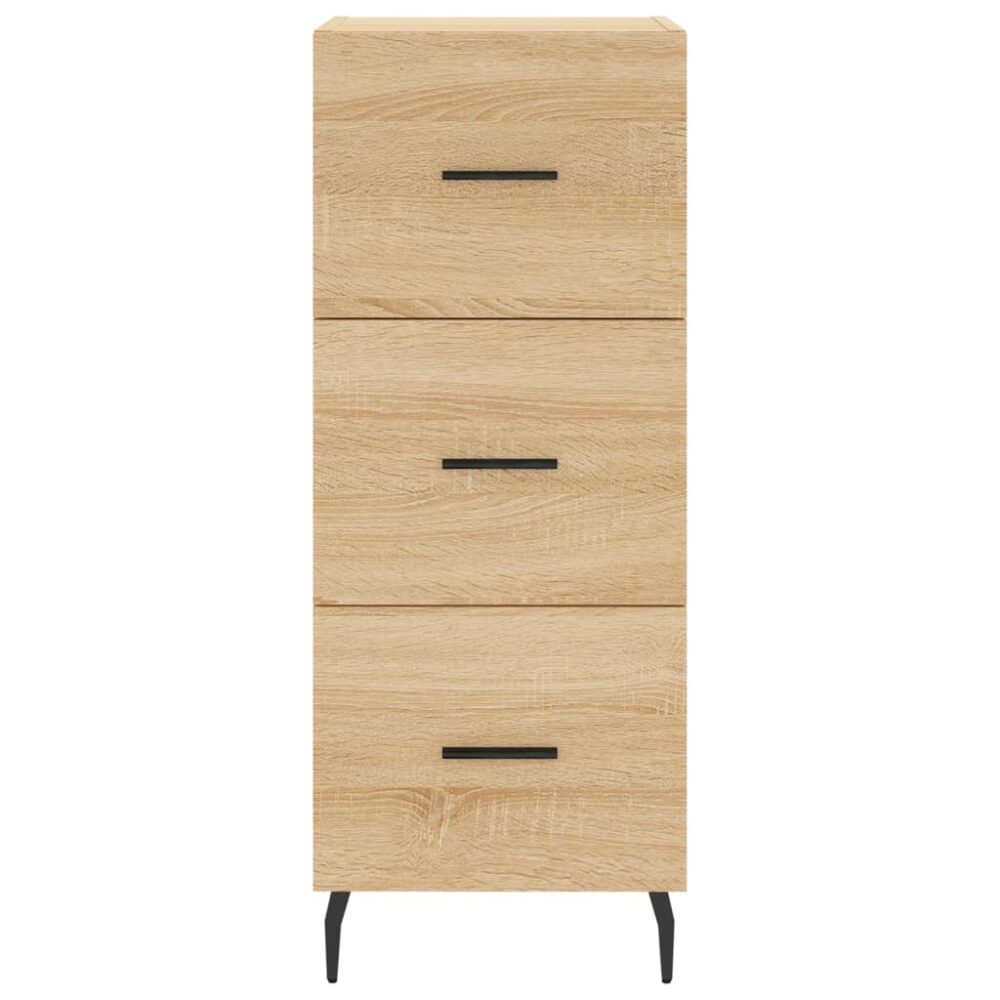 Este aparador moderno, com um aspeto intemporal, destina-se a ser um excelente complemento para a sua casa. Material durável: os derivados de madeira possuem uma qualidade excecional e oferecem uma superfície suave bem como força, estabilidade e resistência à humidade. Pernas de metal: as pernas de metal acrescentam um estilo moderno e calmo ao seu interior, ao mesmo tempo que garantem estabilidade. Amplo espaço de arrumação: o aparador foi concebido com 3 gavetas para manter as coisas organizadas e ao seu alcance. Tampo robusto e estável: o tampo do armário é perfeito para expor os seus artigos decorativos, molduras e vasos com plantas. Atenção:Para evitar que o produto se vire, deve utilizar o dispositivo de fixação na parede fornecido.