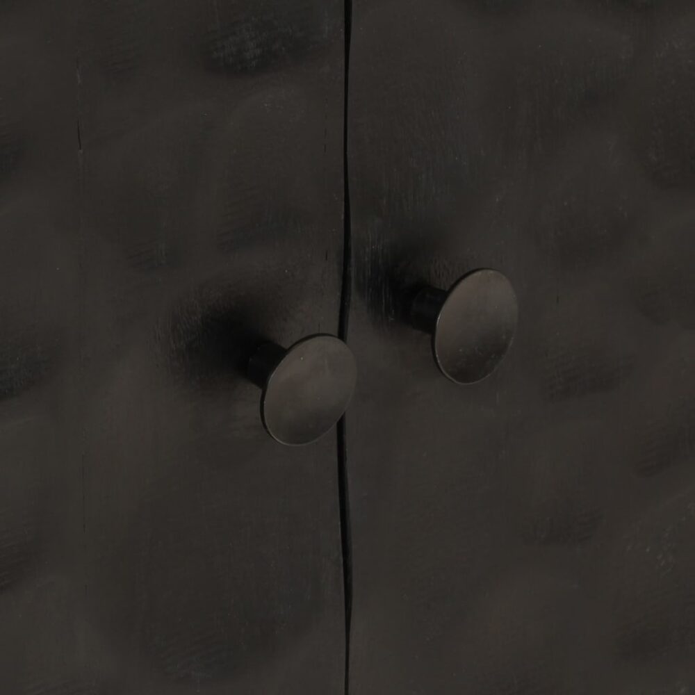Este aparador de madeira será um complemento prático e decorativo para a decoração da sua casa. Madeira de mangueira maciça: a madeira de mangueira maciça é uma madeira de lei tropical utilizada para produzir móveis robustos. Os bonitos grãos da madeira tornam cada peça de mobiliário ligeiramente diferente das restantes. Amplo espaço de arrumação: o armário de arrumação oferece um útil espaço de arrumação para manter as suas coisas organizadas e fáceis de alcançar. Tampo estável: o tampo do aparador é perfeito para expor os seus artigos decorativos, molduras e vasos com plantas. Pernas robustas: as pernas de ferro contribuem para a robustez e estabilidade desta peça de mobília para quarto. Atenção:Para evitar que tombe, este produto deve ser utilizado com o dispositivo de fixação na parede fornecido.