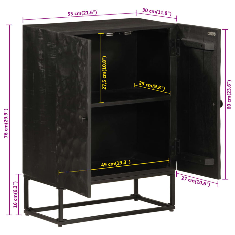 Aparador 55x30x76 cm madeira de mangueira maciça e ferro preto - PORTES GRÁTIS