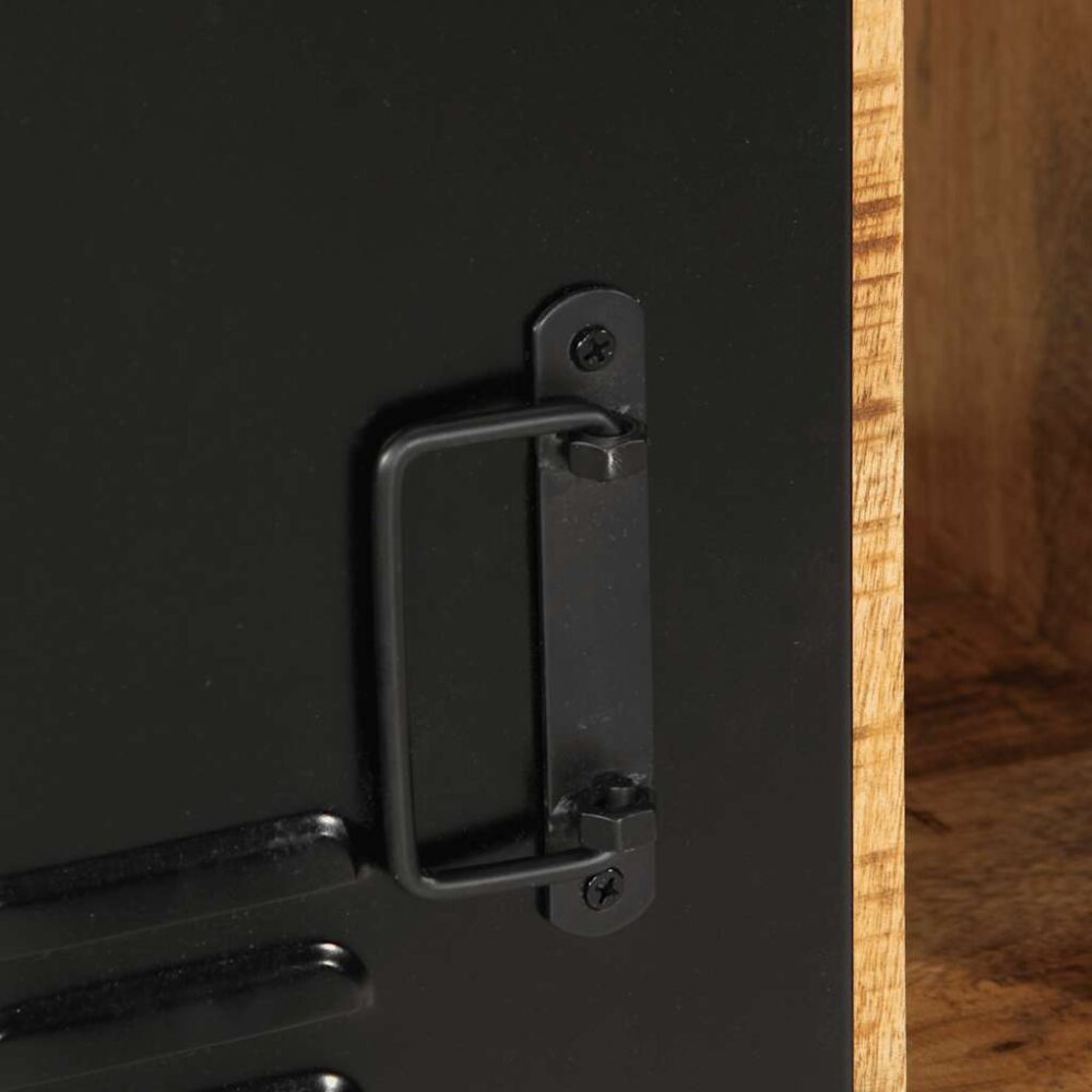 Este aparador clássico, com um aspeto intemporal, destina-se a ser um excelente complemento para a sua casa. Material robusto e estável: a madeira de mangueira maciça, uma robusta madeira tropical, é altamente favorecida no fabrico de móveis dada a sua excecional durabilidade e resistência. Os bonitos grãos da madeira tornam cada peça de mobiliário ligeiramente diferente das restantes.Amplo espaço de arrumação: o móvel proporciona um amplo espaço para manter os seus vários artigos essenciais do dia-a-dia bem organizados e fáceis de alcançar.Função de exposição: o tampo do armário aparador é ótimo para expor os seus artigos decorativos, álbuns de fotografias ou pequenas plantas.Portas práticas: mantenha os seus artigos essenciais livres de pó, escondendo-os atrás das portas. Atenção:Para evitar que tombe, este produto deve ser utilizado com o dispositivo de fixação na parede fornecido. Dica útil:A cor e os grãos variam de peça para peça, tornando cada uma única. A entrega é aleatória, assegurando a exclusividade e a individualidade do seu produto.