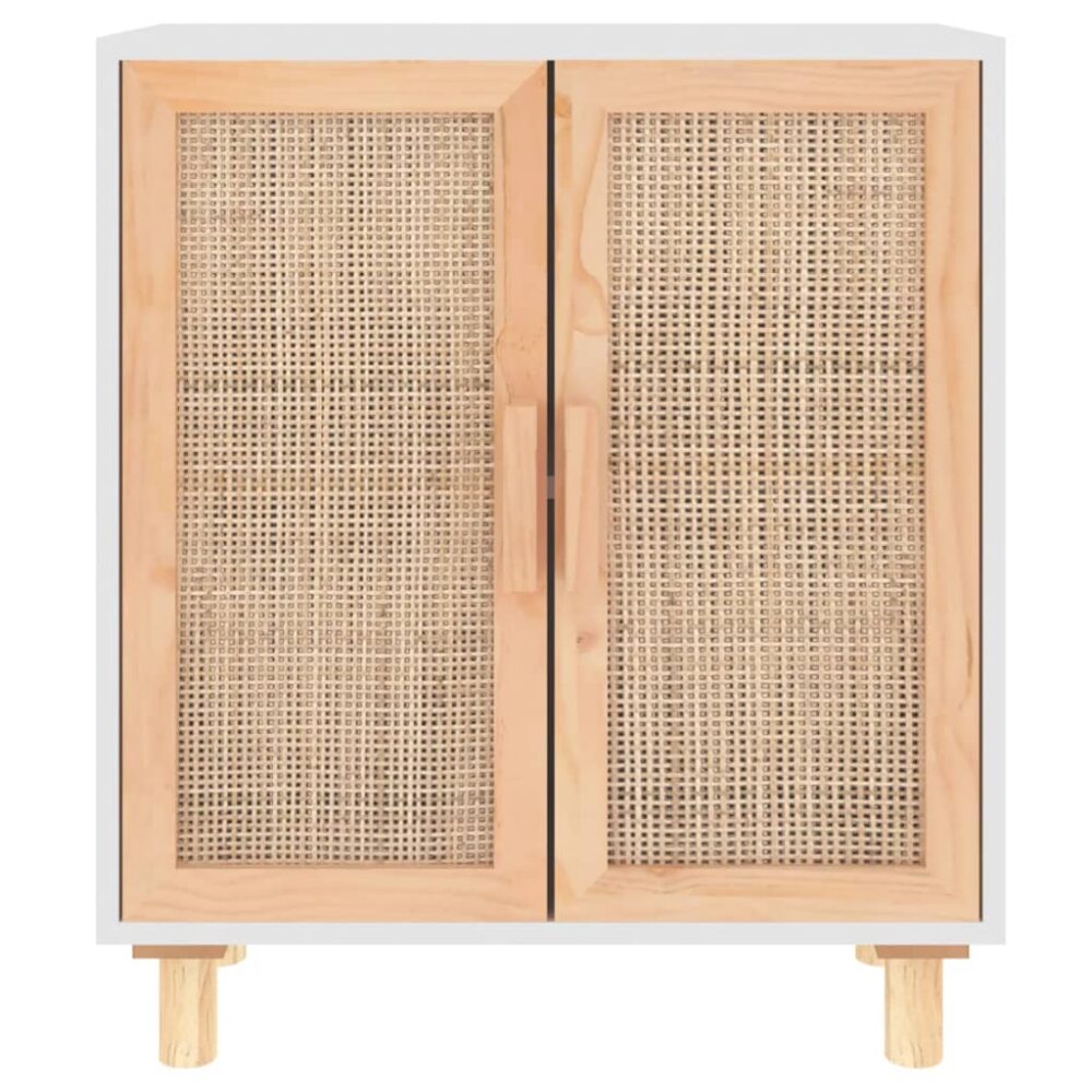 Aparador 60x30x70 cm madeira pinho maciça/vime natural branco - PORTES GRÁTIS
