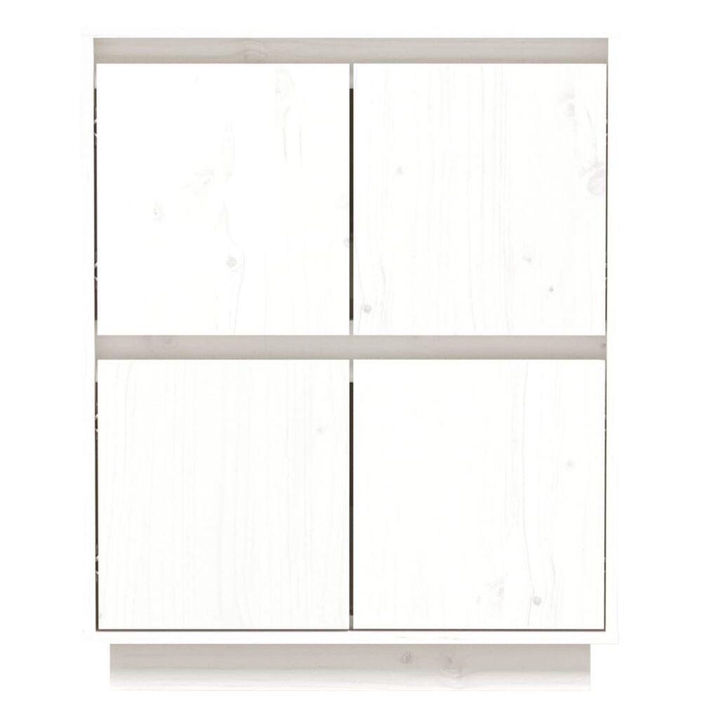 Este aparador de madeira é um complemento decorativo e prático perfeito para a sua decoração. Este armário de apoio é feito em madeira de pinho maciça e MDF, assegurando a sua robustez e construção durável. Com 4 portas, o armário oferece um amplo espaço de arrumação para livros, aparelhos multimédia e outros artigos. O tampo resistente é perfeito para expor objetos decorativos, molduras e vasos com plantas. O armário com portas apresenta pés suspensos.