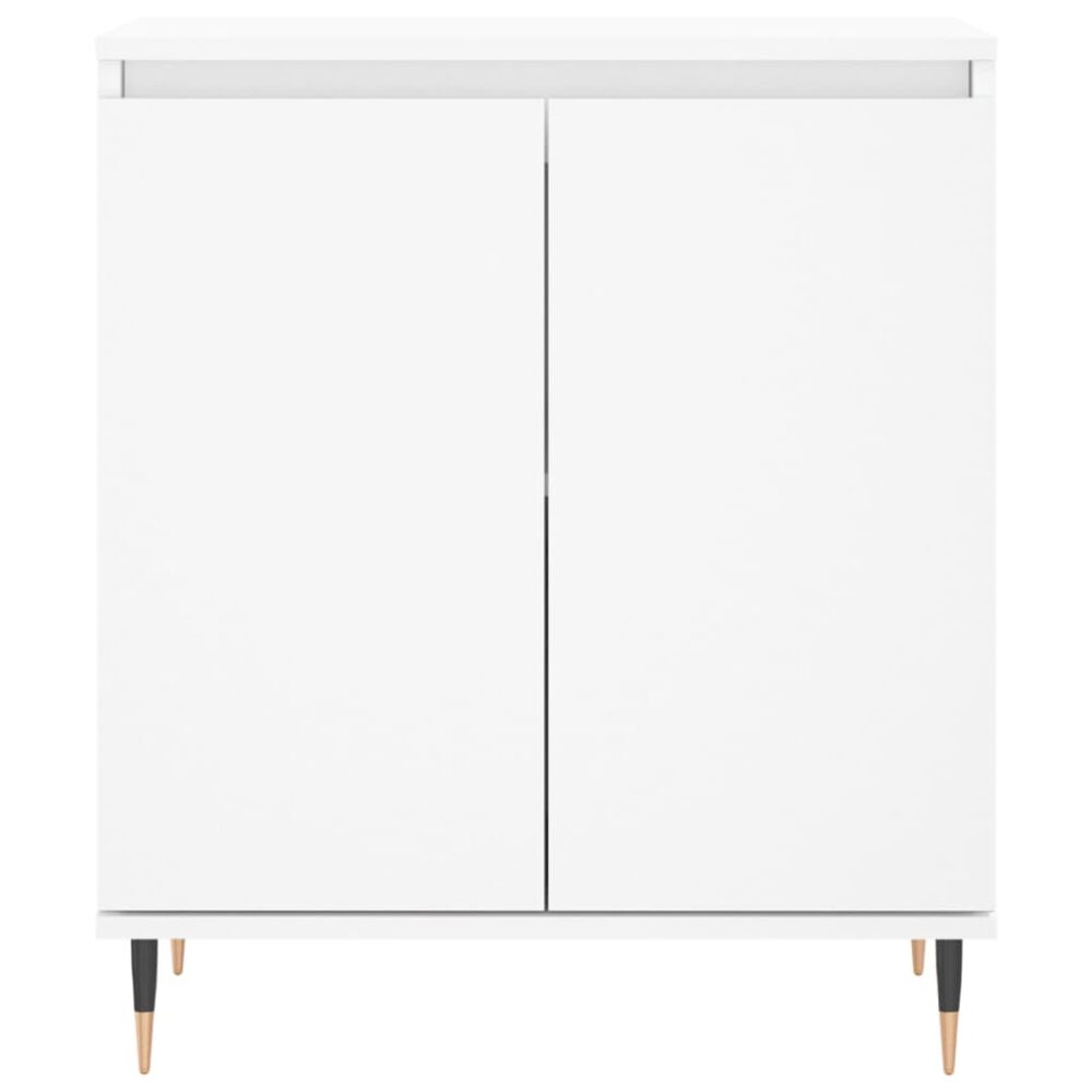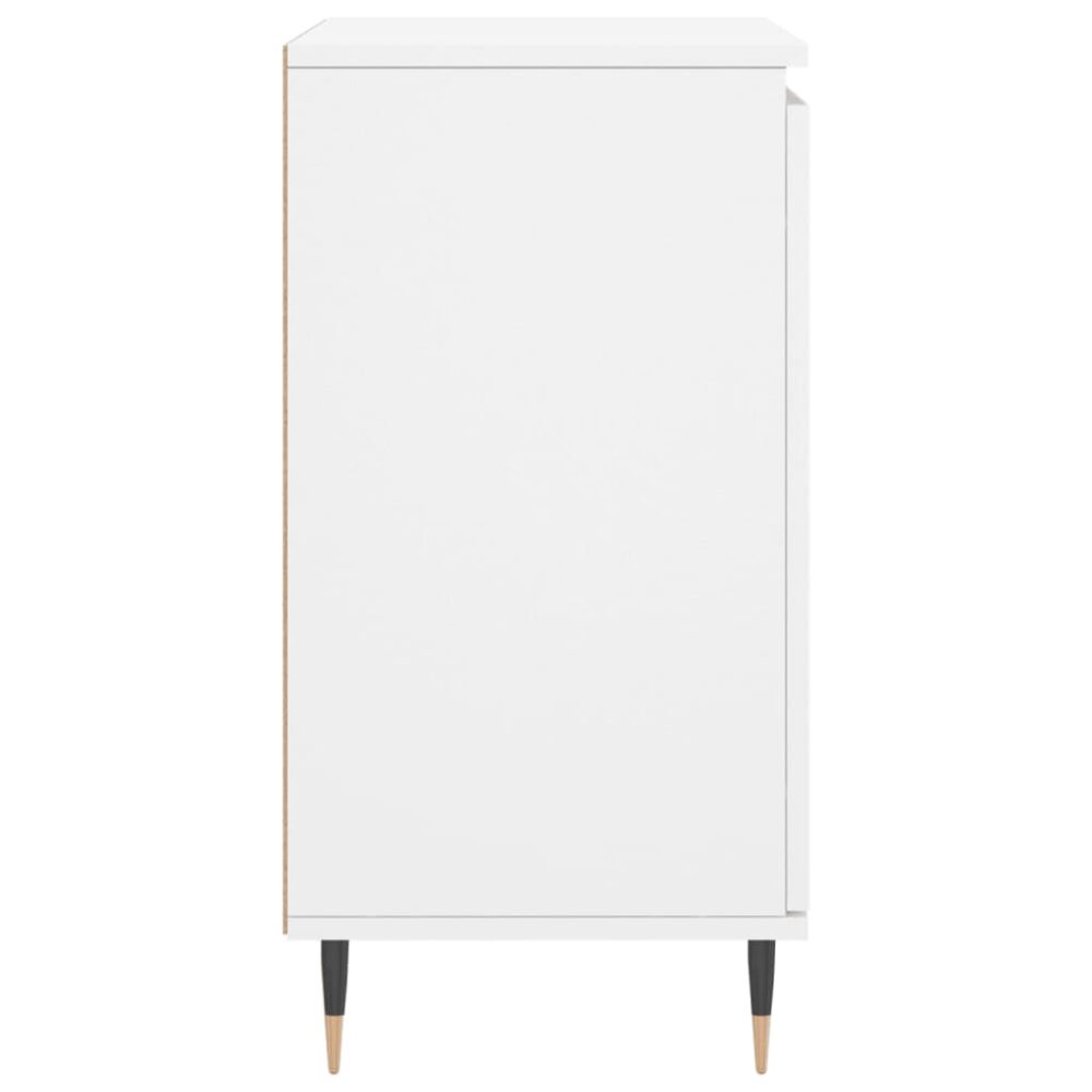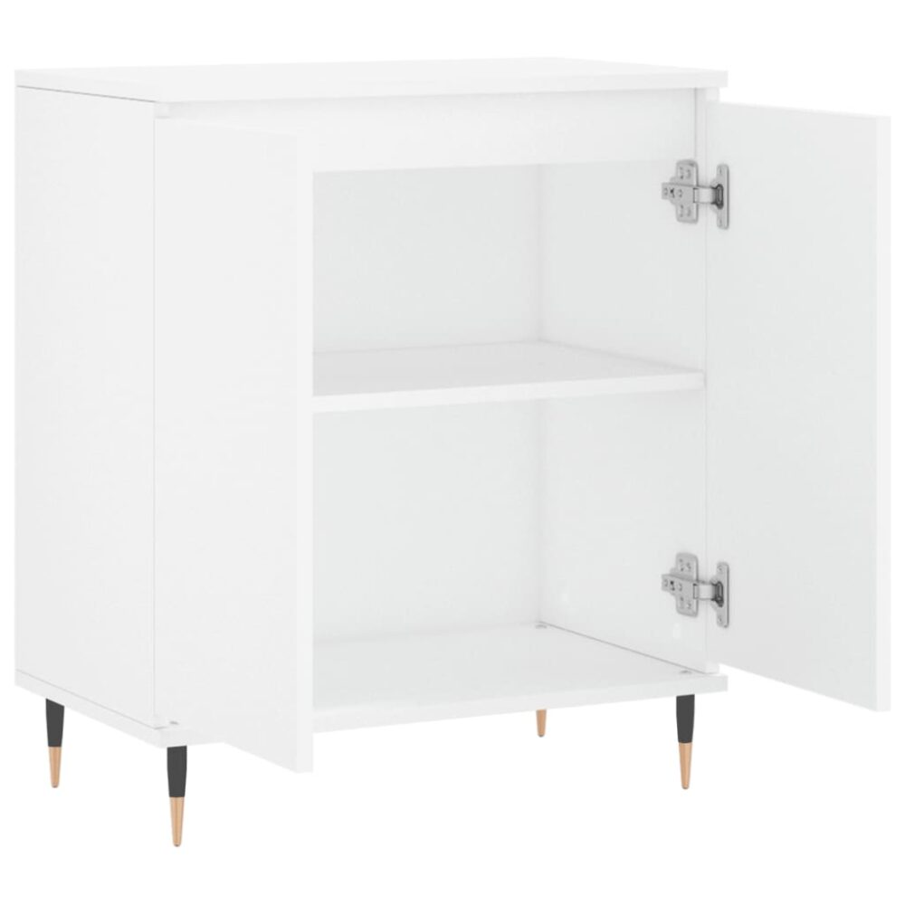 Este aparador moderno, com um aspeto intemporal, destina-se a ser um excelente complemento para a sua casa. Material durável: os derivados de madeira possuem uma qualidade excecional e oferecem não só uma superfície suave mas também força, estabilidade e resistência à humidade. Feito a partir de derivados de madeira, o móvel de arrumação é fácil de limpar com um pano húmido.Amplo espaço de arrumação: o móvel proporciona um amplo espaço para manter os seus vários artigos essenciais do dia-a-dia bem organizados e fáceis de alcançar.Função expositora: o tampo deste aparador é perfeito para expor os seus artigos decorativos, molduras e vasos com plantas.Pernas de ferro: as pernas de ferro do móvel de apoio garantem robustez e estabilidade. Atenção:Para evitar que o produto se vire, deve utilizar o dispositivo de fixação na parede fornecido.