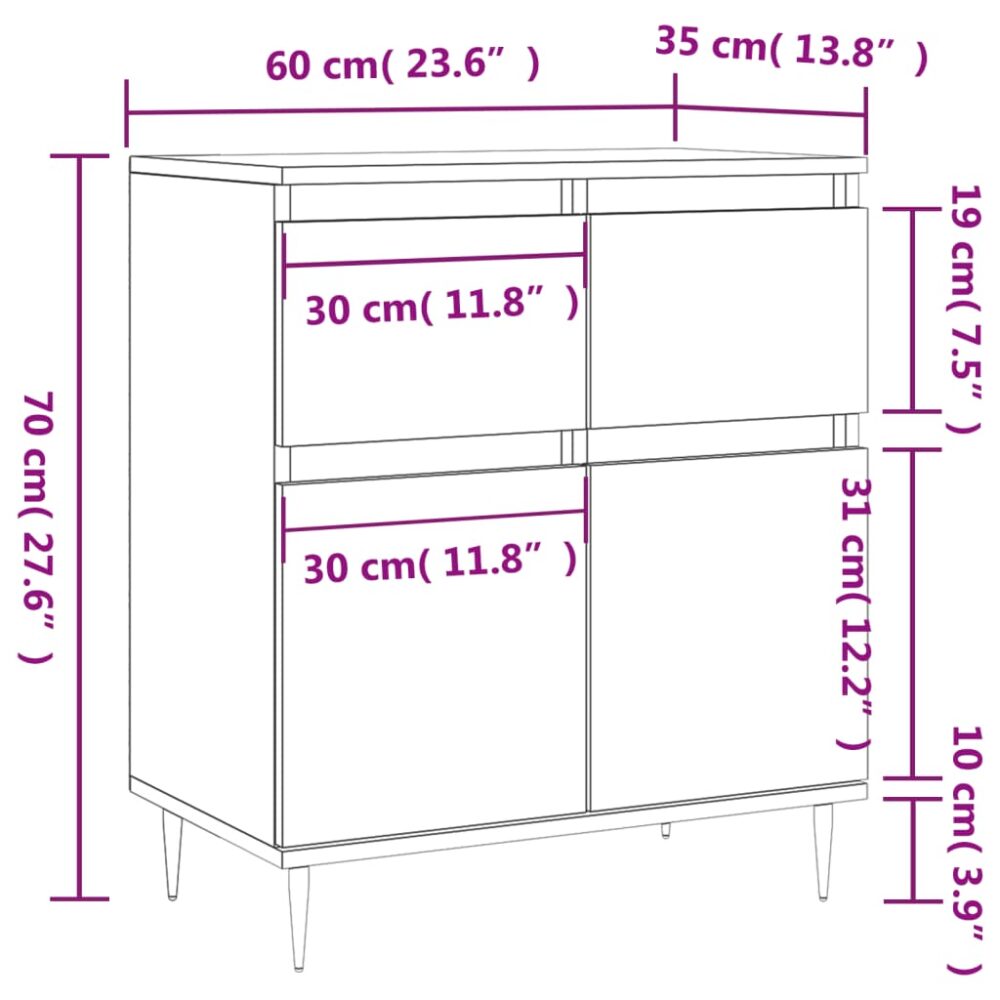 Este aparador moderno, com um aspeto intemporal, destina-se a ser um excelente complemento para a sua casa. Material durável: os derivados de madeira possuem uma qualidade excecional e oferecem não só uma superfície suave mas também força, estabilidade e resistência à humidade. Feito a partir de derivados de madeira, o móvel de arrumação é fácil de limpar com um pano húmido.Amplo espaço de arrumação: o móvel proporciona um amplo espaço para manter os seus vários artigos essenciais do dia-a-dia bem organizados e fáceis de alcançar.Função expositora: o tampo deste aparador é perfeito para expor os seus artigos decorativos, molduras e vasos com plantas.Pernas de ferro: as pernas de ferro do móvel de apoio garantem robustez e estabilidade. Atenção:Para evitar que o produto se vire, deve utilizar o dispositivo de fixação na parede fornecido.