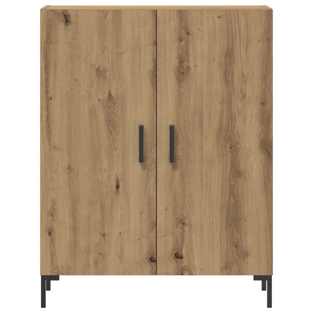 Este aparador clássico, com um aspeto intemporal, destina-se a ser um excelente complemento para a sua casa. Material durável: os derivados de madeira possuem uma qualidade excecional e oferecem não só uma superfície suave mas também força, estabilidade e resistência à humidade. Feito a partir de derivados de madeira, este móvel é fácil de limpar com um pano húmido.Amplo espaço de arrumação: o aparador proporciona um amplo espaço de arrumação para manter os seus vários artigos essenciais diários bem organizados e fáceis de alcançar.Função expositora: o tampo do aparador é ótimo para expor os seus artigos decorativos, álbuns de fotografias ou pequenas plantas.Pés de metal: os pés de metal acrescentam um estilo calmo ao seu interior, assegurando ainda estabilidade. Atenção:Para evitar que tombe, este produto deve ser utilizado com o dispositivo de fixação na parede fornecido.