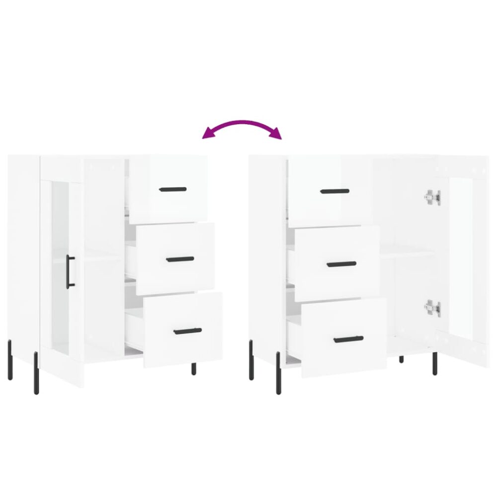Aparador 69,5x34x90 cm madeira processada branco brilhante - PORTES GRÁTIS
