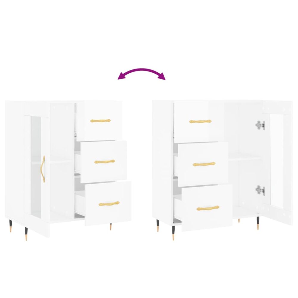 Aparador 69,5x34x90 cm madeira processada branco brilhante - PORTES GRÁTIS