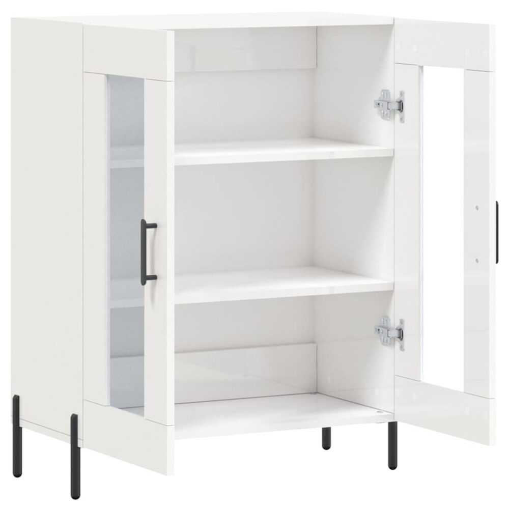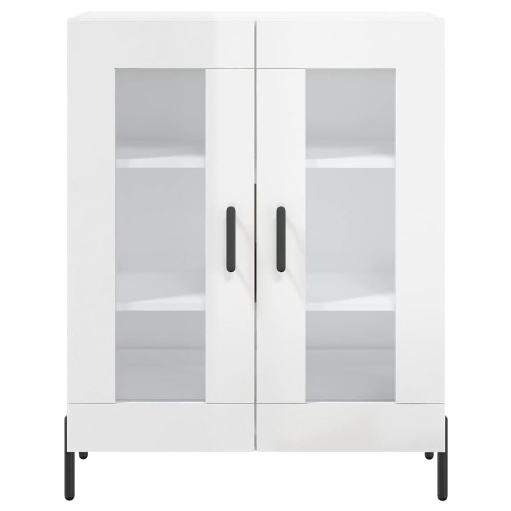 Este aparador clássico, com um aspeto intemporal, destina-se a ser um excelente complemento para a sua casa. Material durável: os derivados de madeira possuem uma qualidade excecional e oferecem não só uma superfície suave mas também força, estabilidade e resistência à humidade. Feito a partir de derivados de madeira, este móvel é fácil de limpar com um pano húmido.Amplo espaço de arrumação: o aparador proporciona um amplo espaço de arrumação para manter os seus vários artigos essenciais diários bem organizados e fáceis de alcançar.Função expositora: o tampo do aparador é ótimo para expor os seus artigos decorativos, álbuns de fotografias ou pequenas plantas.Pés de ferro: os pés de ferro dão um estilo calmo ao seu interior, enquanto asseguram estabilidade. Atenção:Para evitar que o produto se vire, deve utilizar o dispositivo de fixação na parede fornecido.