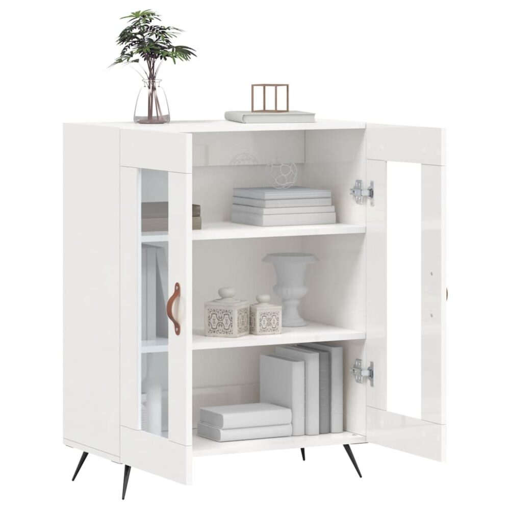 Aparador 69,5x34x90 cm madeira processada branco brilhante - PORTES GRÁTIS