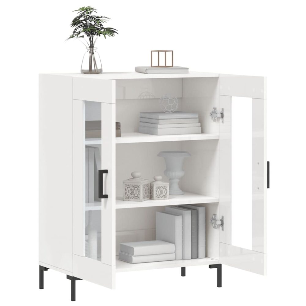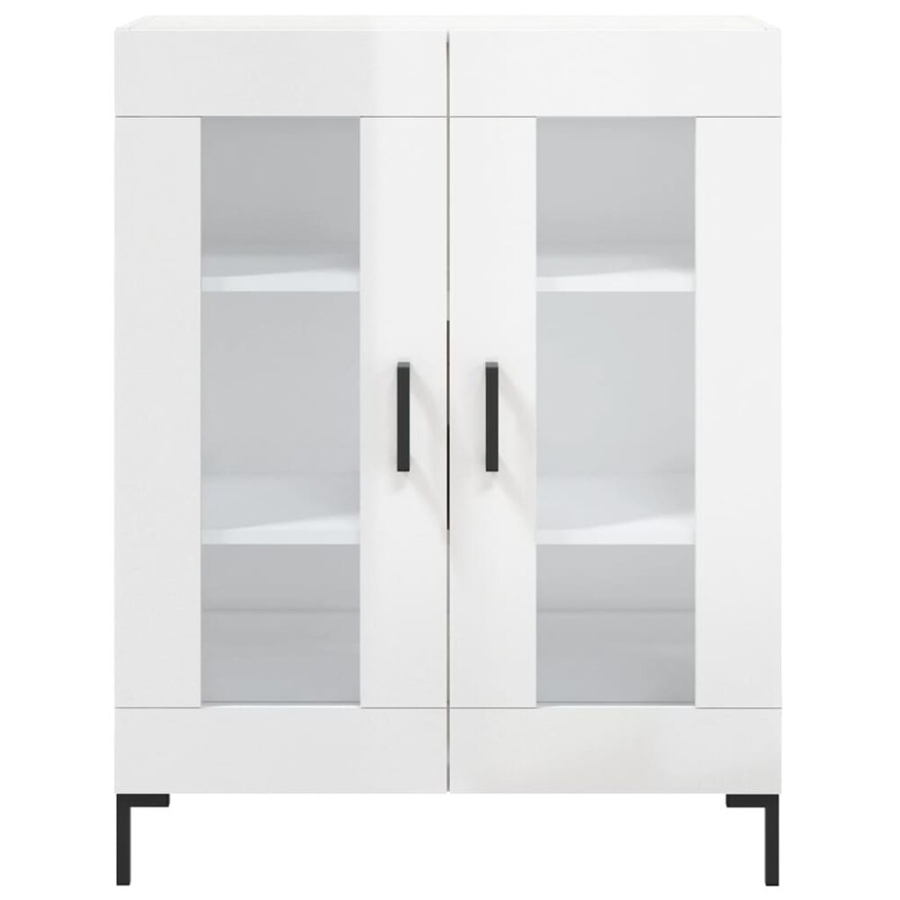 Este aparador clássico, com um aspeto intemporal, destina-se a ser um excelente complemento para a sua casa. Material durável: os derivados de madeira possuem uma qualidade excecional e oferecem não só uma superfície suave mas também força, estabilidade e resistência à humidade. Feito a partir de derivados de madeira, este móvel é fácil de limpar com um pano húmido.Amplo espaço de arrumação: o aparador proporciona um amplo espaço de arrumação para manter os seus vários artigos essenciais diários bem organizados e fáceis de alcançar.Função expositora: o tampo do aparador é ótimo para expor os seus artigos decorativos, álbuns de fotografias ou pequenas plantas.Pés de ferro: os pés de ferro dão um estilo calmo ao seu interior, enquanto asseguram estabilidade. Atenção:Para evitar que o produto se vire, deve utilizar o dispositivo de fixação na parede fornecido.