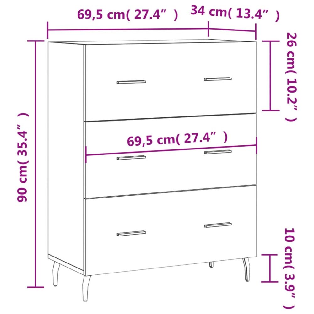 Este aparador clássico possui uma aparência intemporal, tornando-o num complemento perfeito para a sua casa. Material robusto: os móveis feitos em derivados de madeira possuem uma qualidade excecional e oferecem uma superfície suave bem como força, estabilidade e resistência à humidade.Amplo espaço de arrumação: com 3 gavetas, o aparador oferece um amplo espaço de arrumação para manter os seus artigos essenciais do dia-a-dia bem organizados e fáceis de alcançar.Função de exposição: o tampo resistente deste armário é ideal para expor objetos decorativos, molduras e vasos com plantas.Pés de metal: os pés de metal do armário de arrumação acrescentam um estilo calmo ao seu interior, assegurando ainda estabilidade. Atenção:Para evitar que o produto se vire, deve utilizar o dispositivo de fixação na parede fornecido.