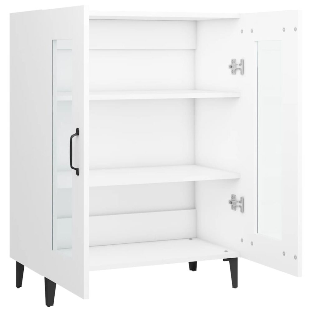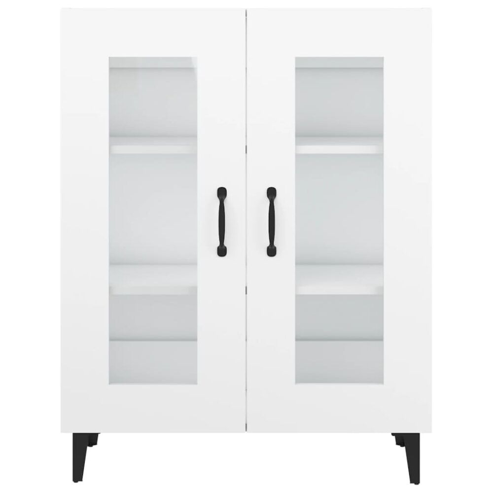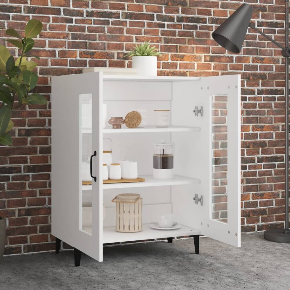 Este aparador clássico destina-se a ser um complemento decorativo e prático para a sua casa. Material robusto: os móveis feitos com derivados de madeira possuem uma qualidade excecional e oferecem uma superfície suave bem como força, estabilidade e resistência à humidade.Amplo espaço de arrumação: o móvel de apoio possui 2 portas, proporcionando um amplo espaço de arrumação para manter os seus artigos essenciais diários bem organizados.Portas de vidro: o aparador apresenta portas de vidro com visão para o interior, que lhe permitem ver claramente os seus artigos e encontrá-los facilmente.Tampo de armário estável: o topo deste suporte para calçado é adequado para colocar os seus artigos de decoração favoritos, tais como jarras, plantas em vasos, etc. Nota:Cada produto é fornecido com um manual na caixa para facilitar a montagem.Atenção:Para evitar que o produto se vire, deve utilizar o dispositivo de fixação na parede fornecido.