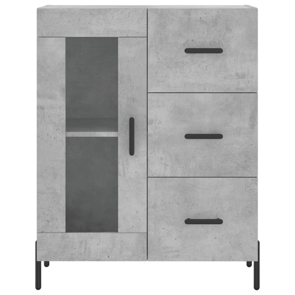 Este aparador clássico possui uma aparência intemporal, tornando-o num complemento perfeito para a sua casa. Material robusto: os móveis feitos em derivados de madeira possuem uma qualidade excecional e oferecem uma superfície suave bem como força, estabilidade e resistência à humidade.Amplo espaço de arrumação: com 3 gavetas e 2 compartimentos atrás da porta de vidro, o aparador oferece um amplo espaço de arrumação para manter os seus artigos essenciais diários bem organizados e fáceis de alcançar.Função de exposição: o tampo resistente deste armário é ideal para expor objetos decorativos, molduras e vasos com plantas.Porta prática: mantenha os seus artigos essenciais livres de pó, guardando-os atrás da porta do armário de arrumação.Pés de metal: os pés de metal acrescentam um estilo calmo ao seu interior, assegurando ainda estabilidade. Atenção:Para evitar que o produto se vire, deve utilizar o dispositivo de fixação na parede fornecido.