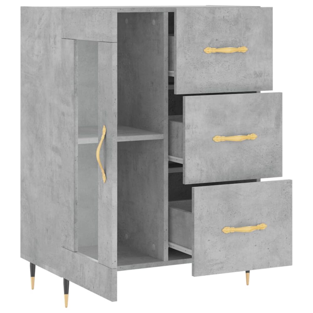 Este aparador clássico possui uma aparência intemporal, tornando-o num complemento perfeito para a sua casa. Material robusto: os móveis feitos em derivados de madeira possuem uma qualidade excecional e oferecem uma superfície suave bem como força, estabilidade e resistência à humidade.Amplo espaço de arrumação: com 3 gavetas e 2 compartimentos atrás da porta de vidro, o aparador oferece um amplo espaço de arrumação para manter os seus artigos essenciais diários bem organizados e fáceis de alcançar.Função de exposição: o tampo resistente deste armário é ideal para expor objetos decorativos, molduras e vasos com plantas.Porta prática: mantenha os seus artigos essenciais livres de pó, guardando-os atrás da porta do armário de arrumação.Pés de metal: os pés de metal acrescentam um estilo calmo ao seu interior, assegurando ainda estabilidade. Atenção:Para evitar que o produto se vire, deve utilizar o dispositivo de fixação na parede fornecido.