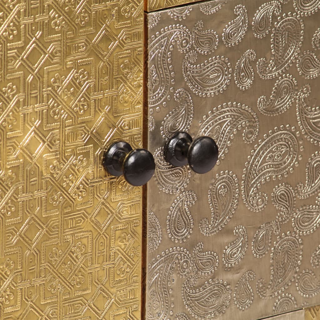 Este armário é feito em madeira de acácia maciça com um acabamento a mel subtil, o que lhe atribui uma aparência bonita e cores quentes. Os belos detalhes decorativos em metal com tons de cores diferentes, bem como os puxadores estilo antigo, conferem a este armário de madeira um toque de charme luxuoso. A artesania de alta qualidade e os belos grãos da madeira tornam cada peça de mobiliário única e ligeiramente diferente das restantes. Este móvel possui 2 compartimentos com portas, que fornecem um amplo espaço de armazenamento para as suas roupas, livros e vários outros artigos.
