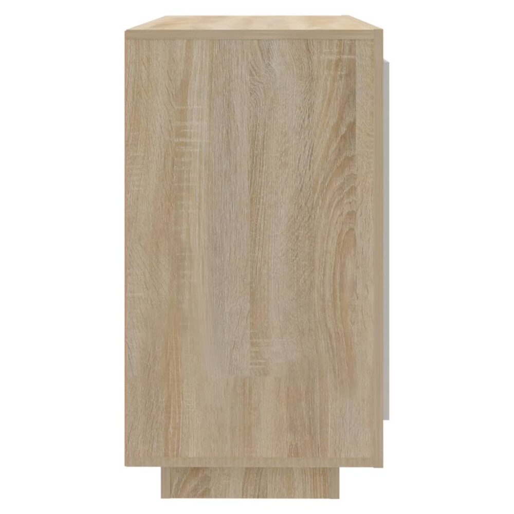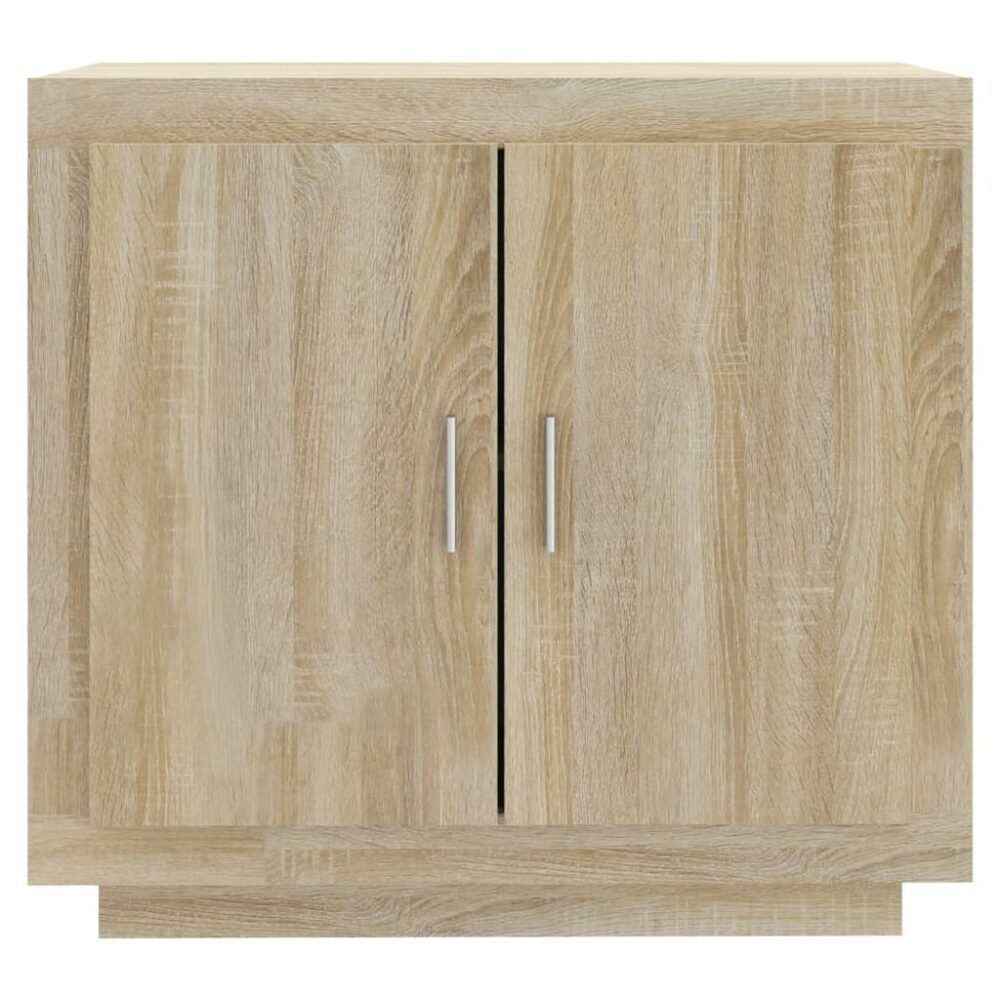 Este aparador elegante é tão decorativa como prática para a sua casa. Estrutura robusta: a madeira processada possui uma qualidade excecional e oferece uma superfície suave, assim como força, estabilidade e resistência à humidade.Ampla arrumação: o aparador, cuja cor é carvalho sonoma, possui 2 compartimentos no interior das portas e fornece-lhe um amplo espaço de arrumação para guardar os seus livros, revistas, assim como vários outros artigos.Fácil de limpar: o armário de arrumação, cuja cor é carvalho natural, é fácil de limpar com um pano húmido. Atenção:Para evitar que o produto se vire, deve utilizar o dispositivo de fixação na parede fornecido.
