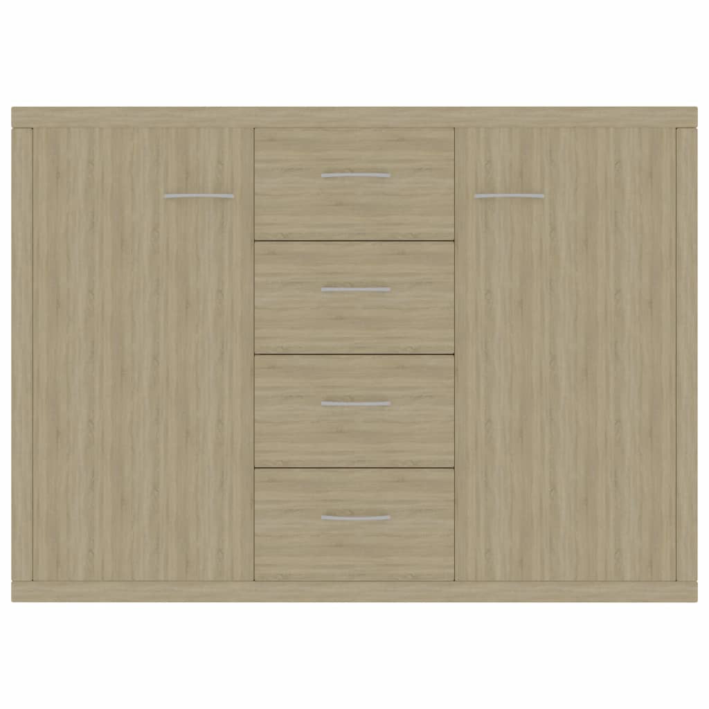 Com 4 gavetas e 2 portas, o aparador oferece um amplo espaço de armazenamento para livros, aparelhos multimédia e outros itens. O tampo da mesa é ideal para exibir objetos decorativos, molduras ou vasos com plantas. Também pode ser usado como armário baixo, armário lateral, etc. Graças ao material de elevada qualidade, este aparador foi construído para durar.