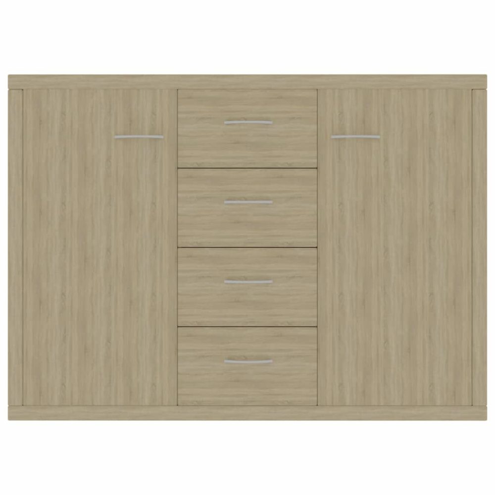 Com 4 gavetas e 2 portas, o aparador oferece um amplo espaço de armazenamento para livros, aparelhos multimédia e outros itens. O tampo da mesa é ideal para exibir objetos decorativos, molduras ou vasos com plantas. Também pode ser usado como armário baixo, armário lateral, etc. Graças ao material de elevada qualidade, este aparador foi construído para durar.