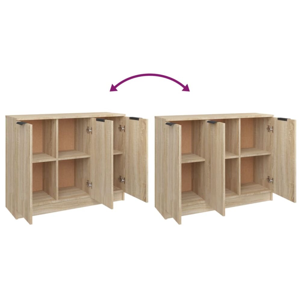 Dê um toque de charme moderno ao seu interior com este aparador. Material fácil de limpar: a madeira processada é de qualidade excecional com uma superfície suave e, ainda, apresenta força, estabilidade e resistência à humidade. Feito a partir de derivados de madeira, o móvel de apoio é fácil de limpar com um pano húmido.Espaço de arrumação amplo: equipado com 3 portas, o armário oferece amplo espaço de arrumação para manter os artigos devidamente organizados.Tampo robusto: o armário de arrumação apresenta um tampo robusto que pode ser usado para exibir objetos decorativos, tais como molduras fotográficas ou plantas em vasos. AVISO:Para evitar que o produto se vire, deve utilizar o dispositivo de fixação na parede fornecido.