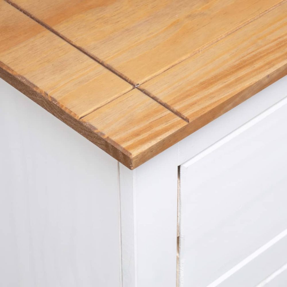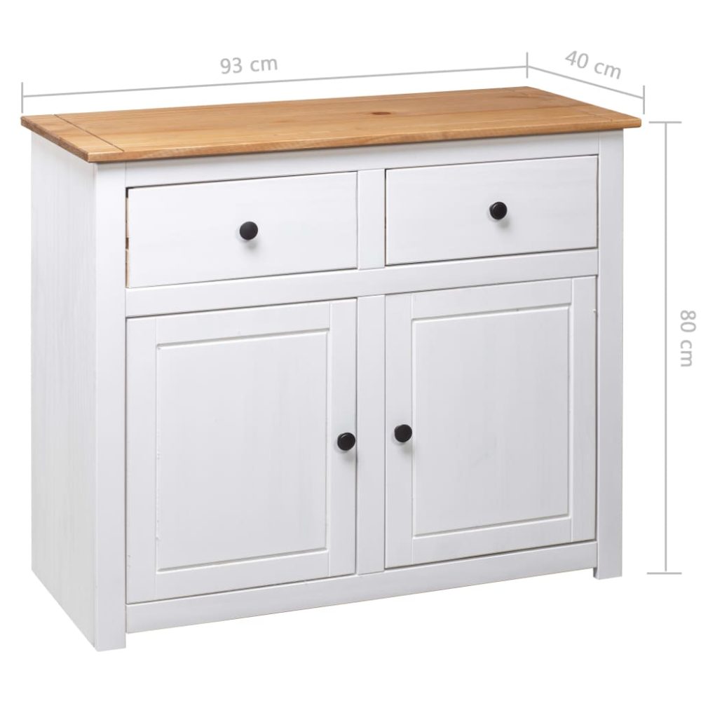 Concebido com 2 gavetas e 2 portas, o aparador mantém as suas revistas, livros, DVD e dispositivos multimédia bem organizados e ao seu alcance. O seu tampo robusto é ideal para acomodar artigos decorativos tais como jarros ou vasos com plantas. O armário é feito em madeira de pinho maciça. Cada etapa do processo é realizada com o máximo cuidado, seja o polimento, a pintura ou o envernizamento. A artesania requintada e os grãos de madeira esteticamente atraentes tornam cada peça de mobiliário única e ligeiramente diferente das restantes.