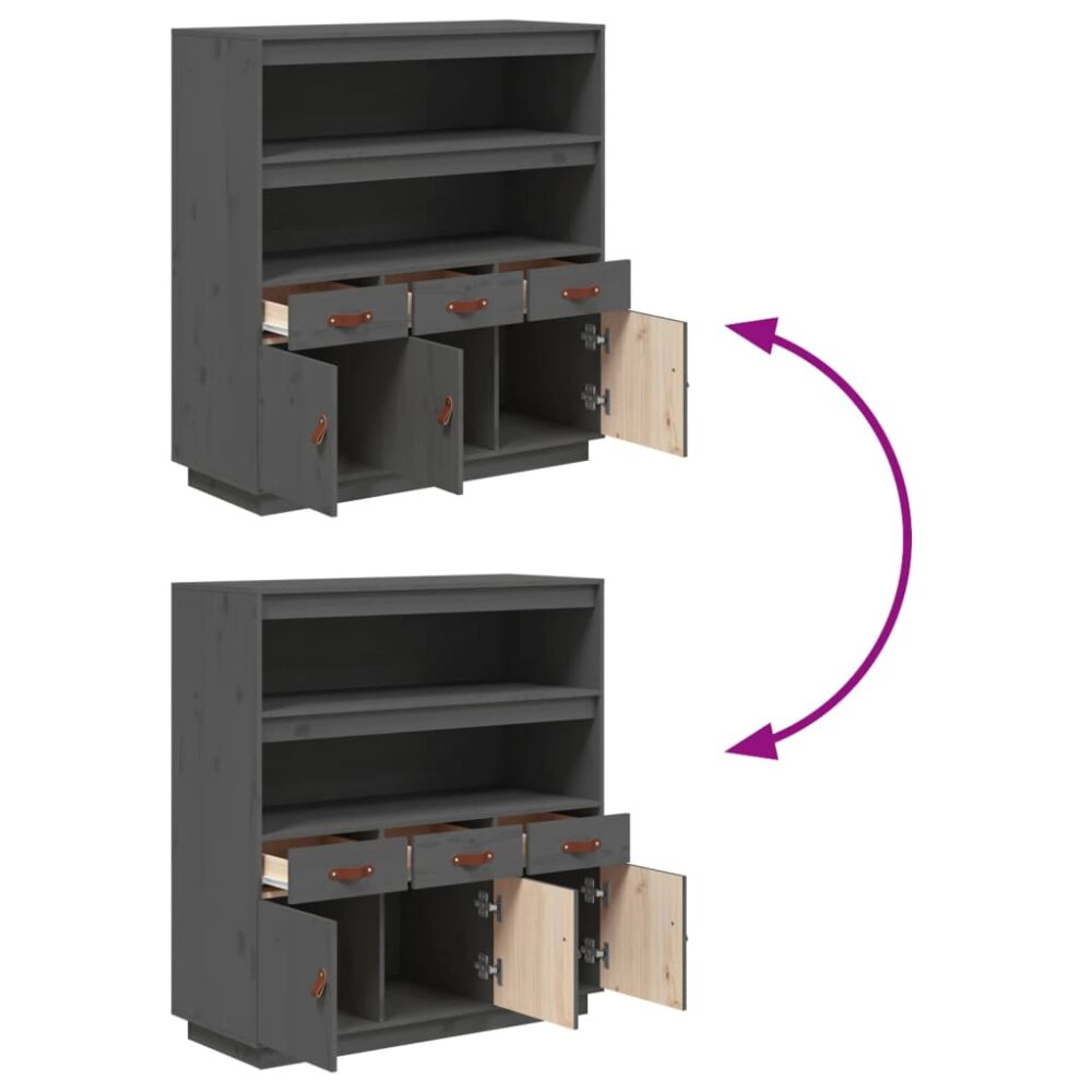 Aparador alto 100x40x108,5 cm pinho maciço cinzento - PORTES GRÁTIS