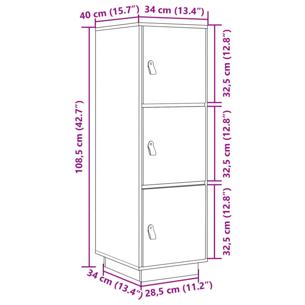 Este clássico armário alto em madeira é um complemento perfeito para o seu quarto, sala de estar ou escritório, criando uma impressão duradoura! Material robusto: a madeira de pinho maciça é um bonito material natural. A madeira de pinho possui um grão reto e os nós dão ao material o seu aspeto rústico.Amplo espaço de arrumação: o aparador possui 3 compartimentos com 3 portas, proporcionando um amplo espaço de arrumação para manter os seus vários artigos essenciais diários bem organizados e fáceis de alcançar.Função de exposição: o tampo robusto deste armário de apoio é o local perfeito para expor objetos decorativos, molduras e vasos com plantas. Atenção:Para evitar que o produto se vire, deve utilizar o dispositivo de fixação na parede fornecido. Nota:Cada produto é fornecido com um manual de montagem na caixa para facilitar a montagem.