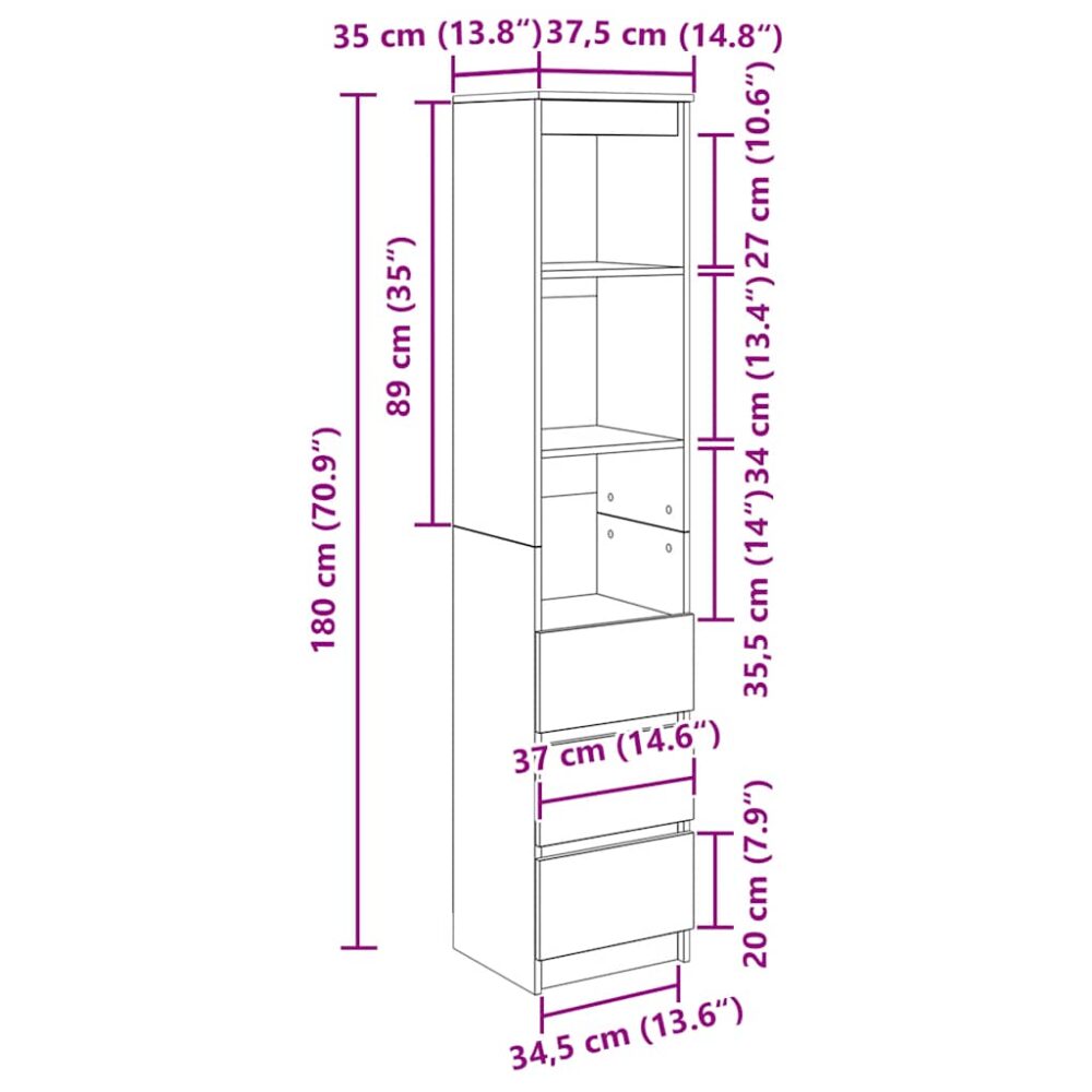 Aparador alto 37,5x35x180 cm derivados madeira cinzento-cimento - PORTES GRÁTIS