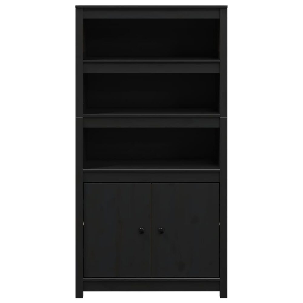 Aparador alto 80x35x154 cm madeira de pinho maciça preto - PORTES GRÁTIS