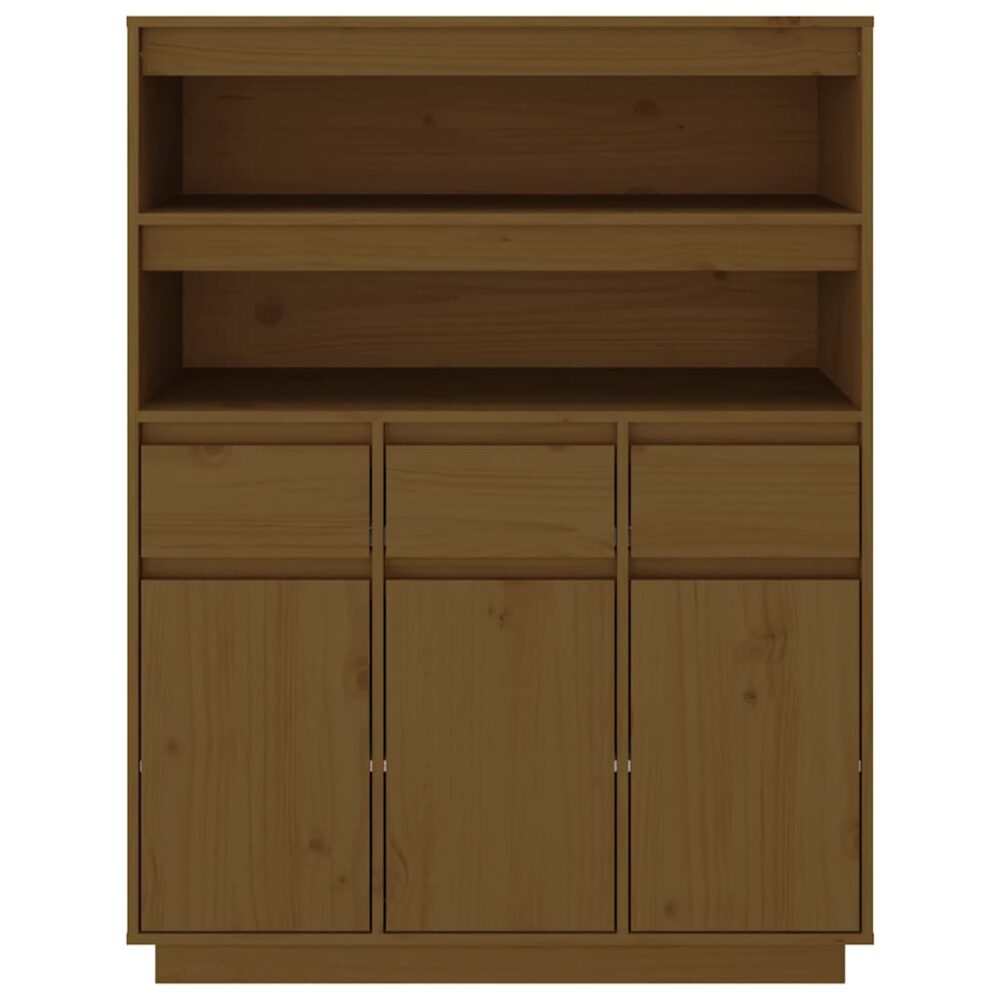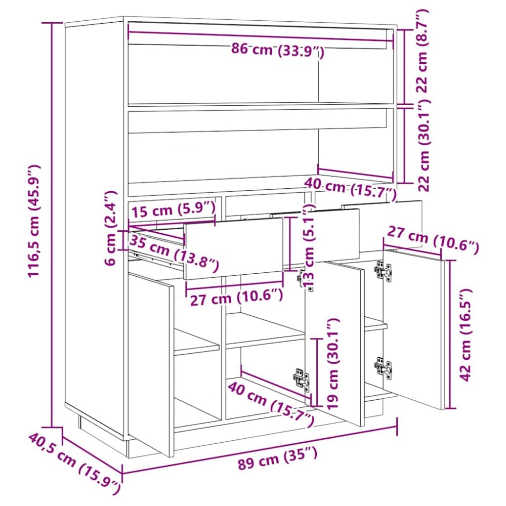 Este clássico aparador alto em madeira destina-se a ser um complemento decorativo e prático para a sua casa. Madeira de pinho maciça: este aparador é feito de madeira de pinho maciça. A madeira de pinho maciça é um bonito material natural. A madeira de pinho possui um grão reto e os nós conferem ao material o seu aspeto rústico.Amplo espaço de arrumação: o aparador possui 2 prateleiras abertas, 3 gavetas e 6 compartimentos, proporcionando um amplo espaço de arrumação para manter os seus vários artigos essenciais do dia-a-dia bem organizados e fáceis de alcançar.Design prático: este armário de arrumação possui portas, que podem proteger as suas coisas do pó e da sujidade.Tampo robusto: pode também colocar as suas fotografias, decorações ou flores favoritas no tampo deste armário de apoio para dar mais beleza ao seu espaço. Atenção:Para evitar que o produto se vire, deve utilizar o dispositivo de fixação na parede fornecido. Nota:Cada produto é fornecido com um manual de instruções na caixa para facilitar a montagem.