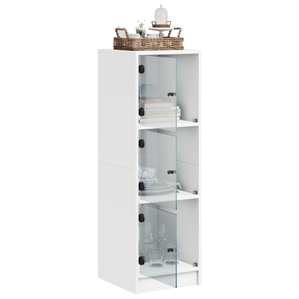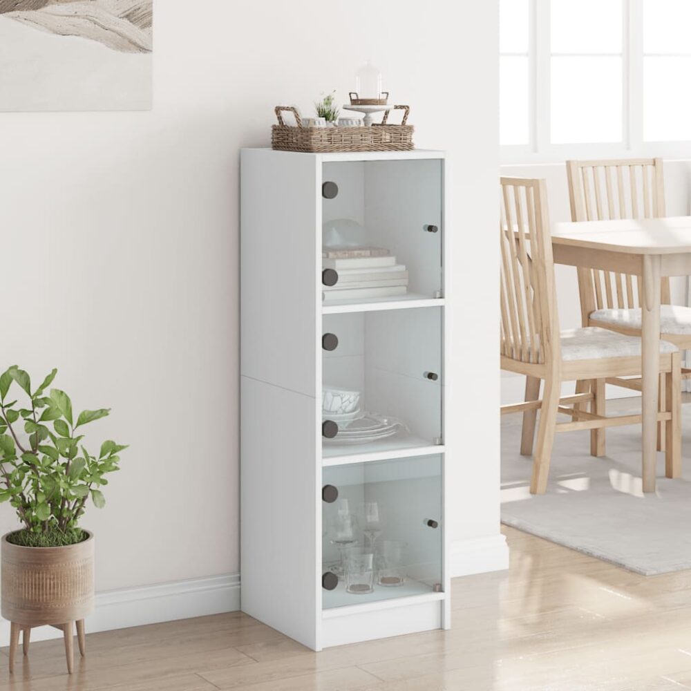 Aparador alto c/ portas de vidro 35x37x109 cm branco - PORTES GRÁTIS